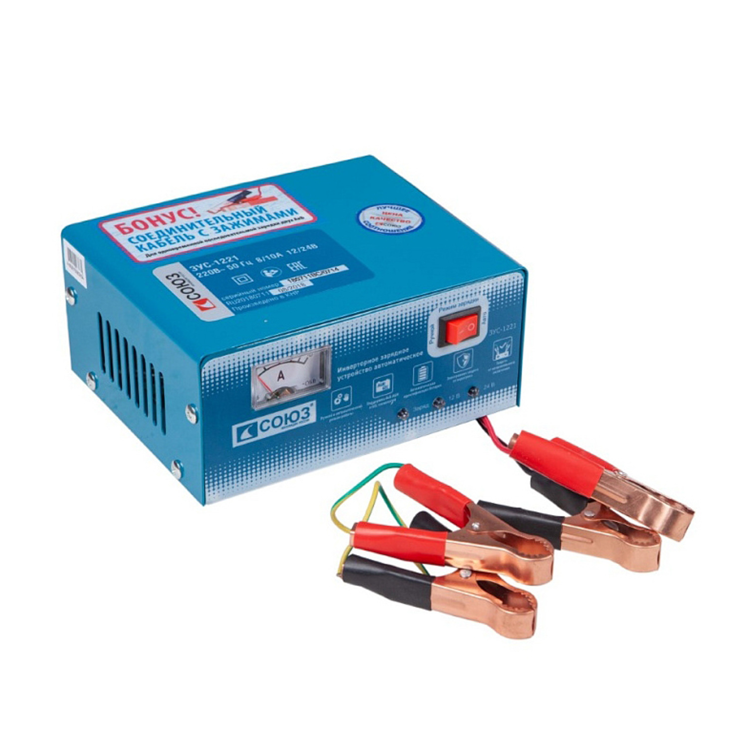 Устройство зарядное для автомобильного аккумулятора 12В/24В 10А инверторное ЗУС-1221 СОЮЗ *1