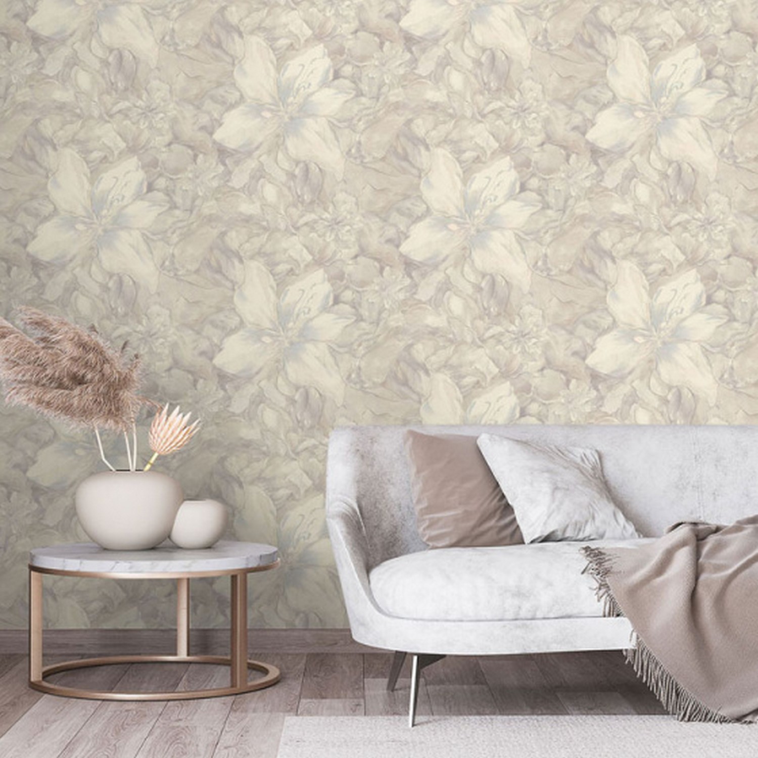 Фон коллекции «Fern» выполнен в спокойных пастельных тонах и имитирует текстуру рогожки, покрытую перламутром. Такое решение поддерживает основной мотив и придает всей коллекции атмосферу уюта и комфорта.
