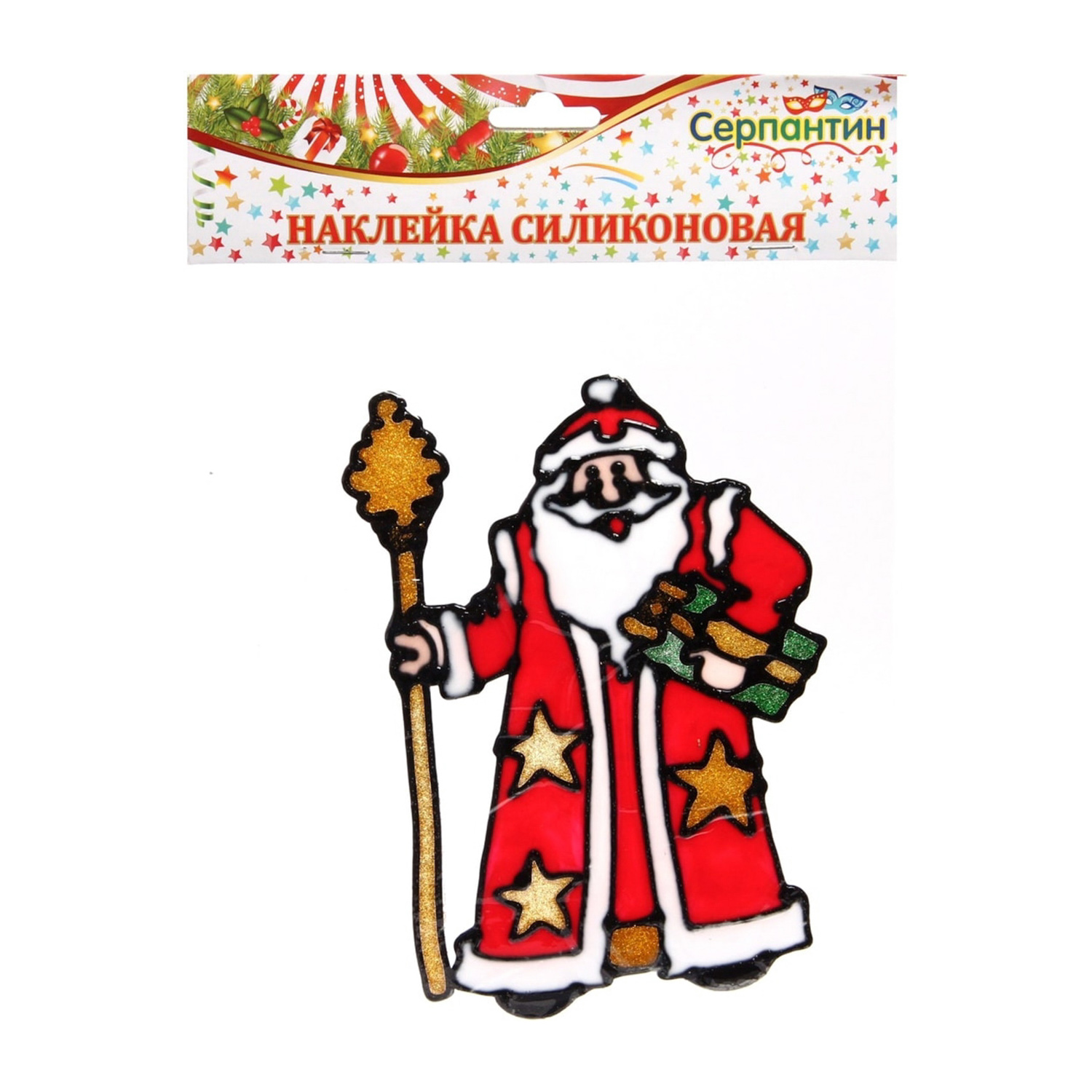 яяяНаклейка на стекло  19*23 см,"Дед Мороз с посохом"