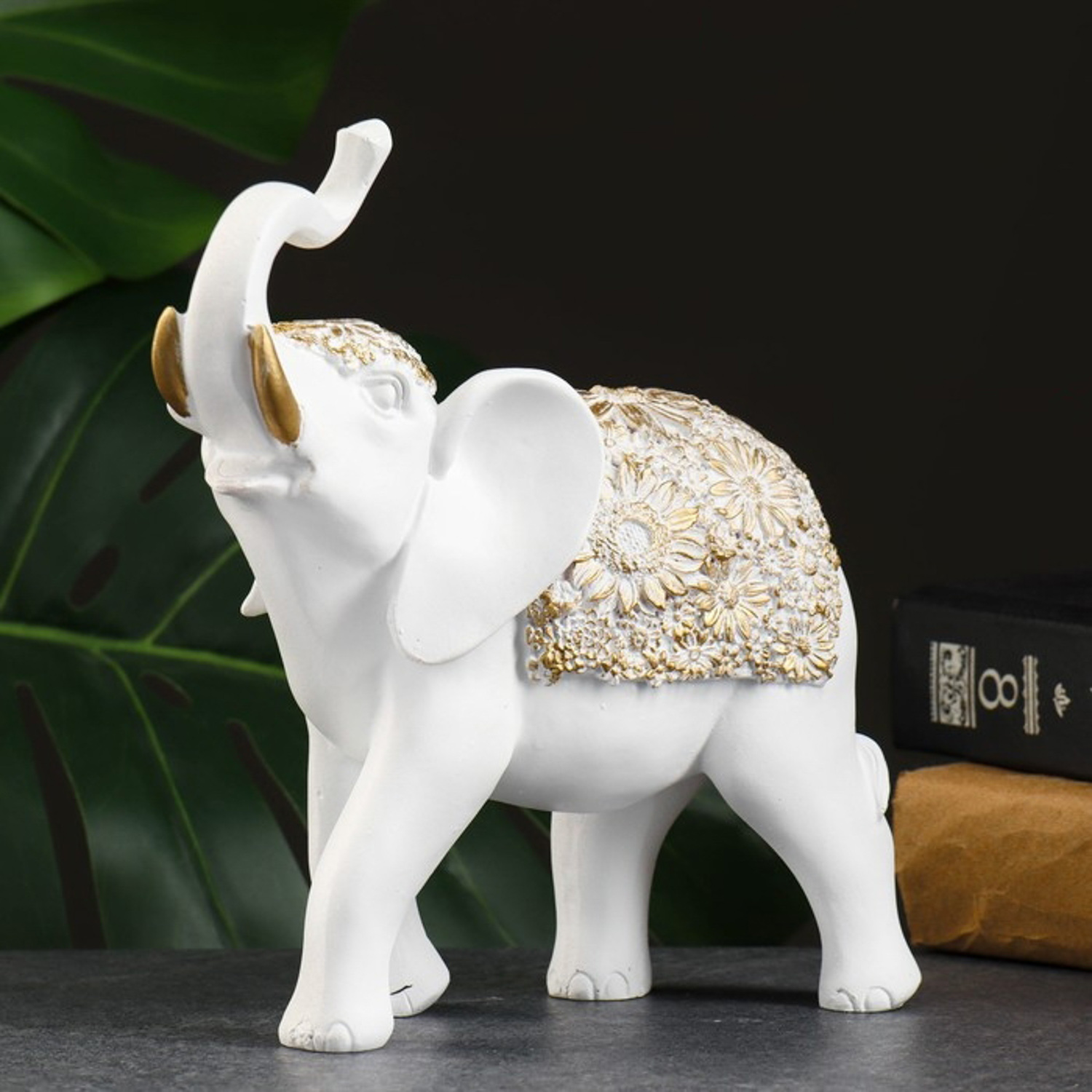Фигура "Слон" белый/золото, 20х8х19см 4881506