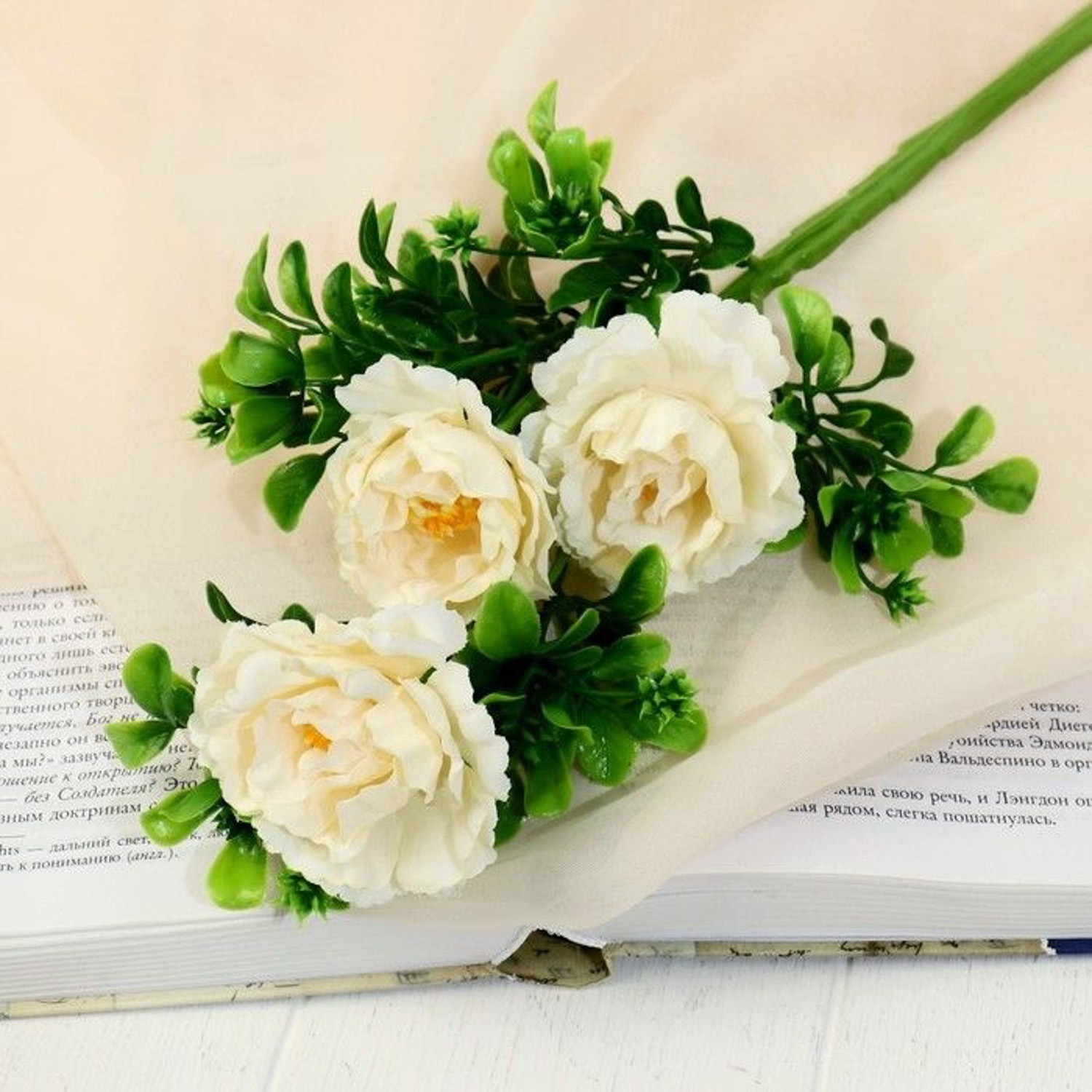 Цветы искусственные"Пион ветка" d-6 см 36 см, молочный 7444057