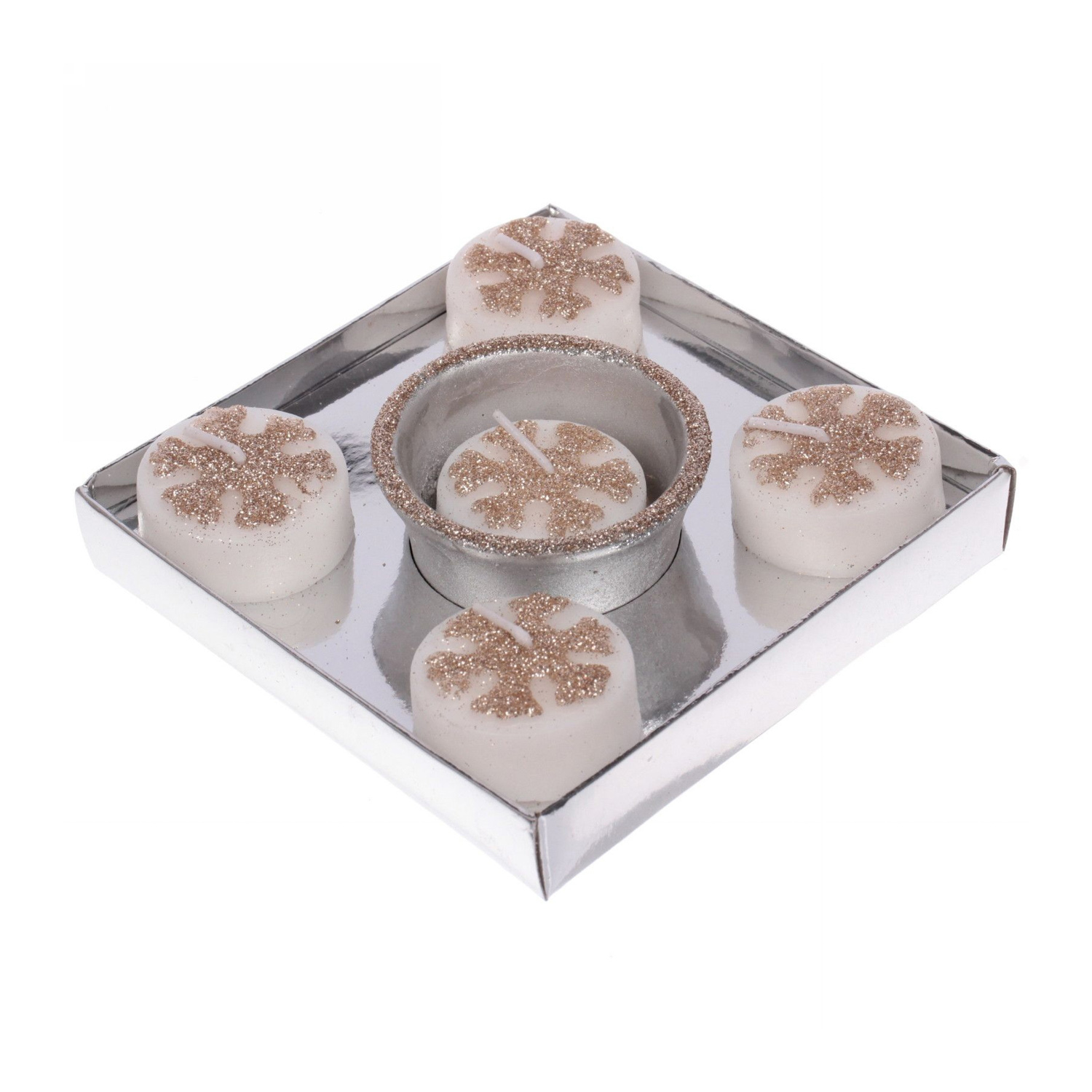 Свечи набор "Сказочные снежинки" 11,5х11,5х3 см, шампань