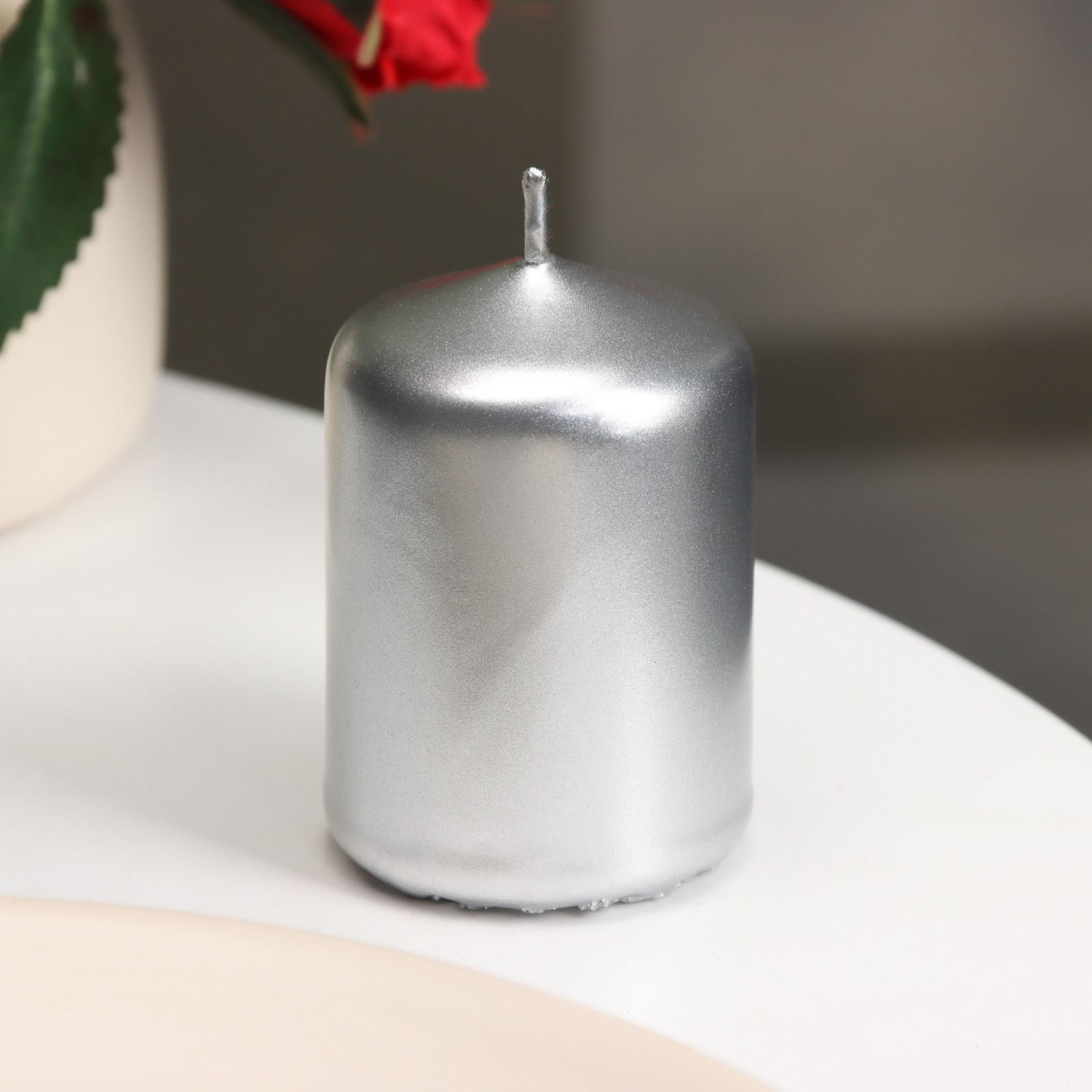 Свеча - цилиндр, 4х6 см, 9 ч, серебро 2823909