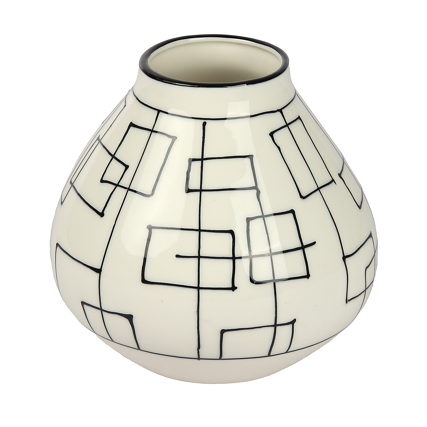 Ваза керамика настольная "Пикассо" (ручная роспись) квадраты, h=17 см, d=7см чёрно-белый 10073214