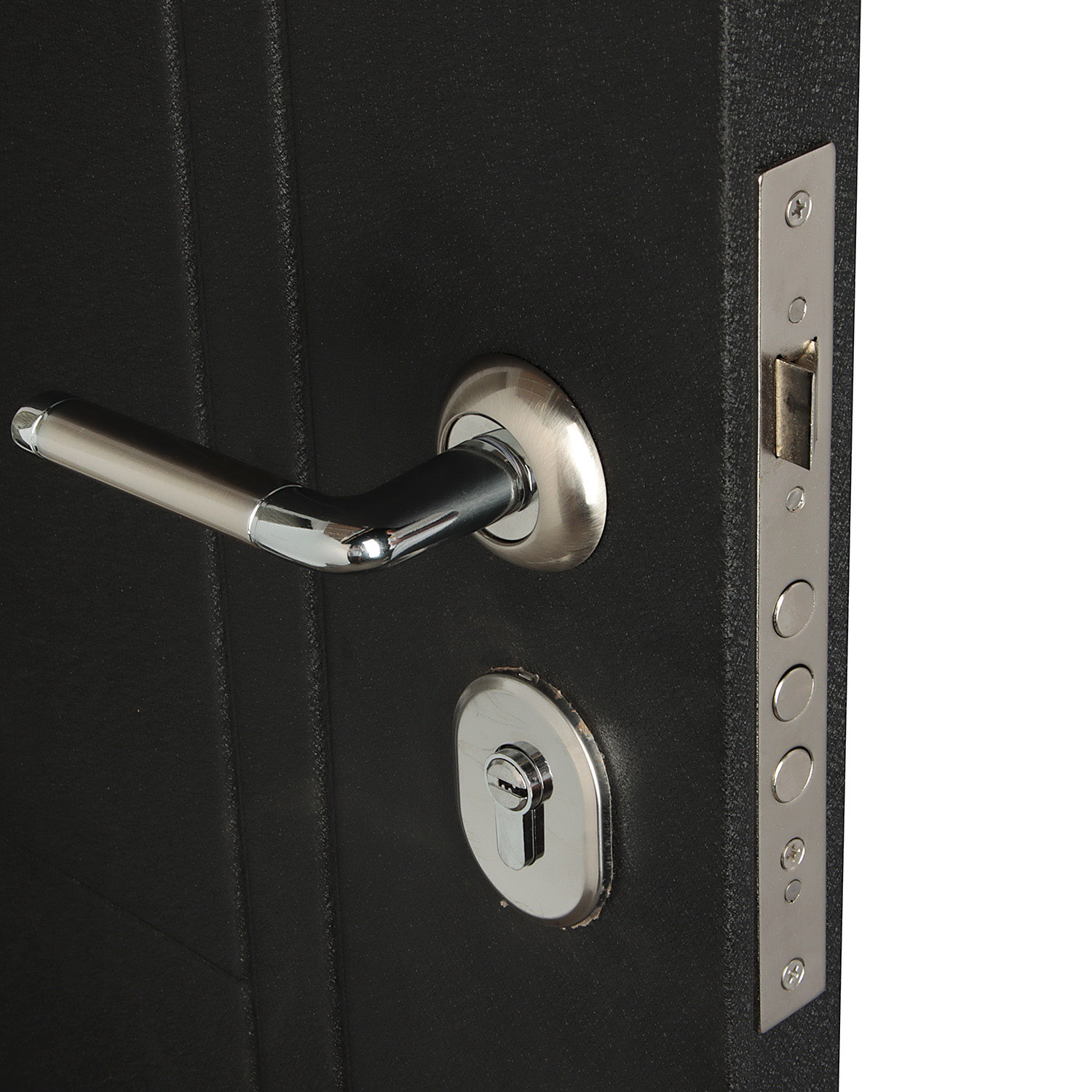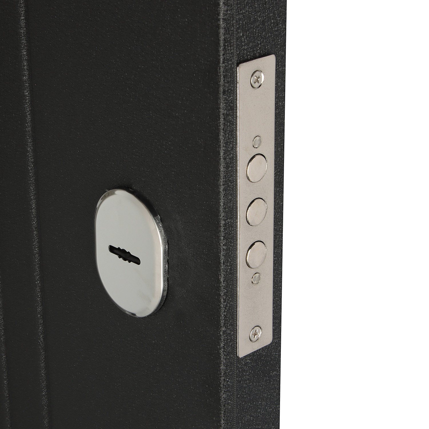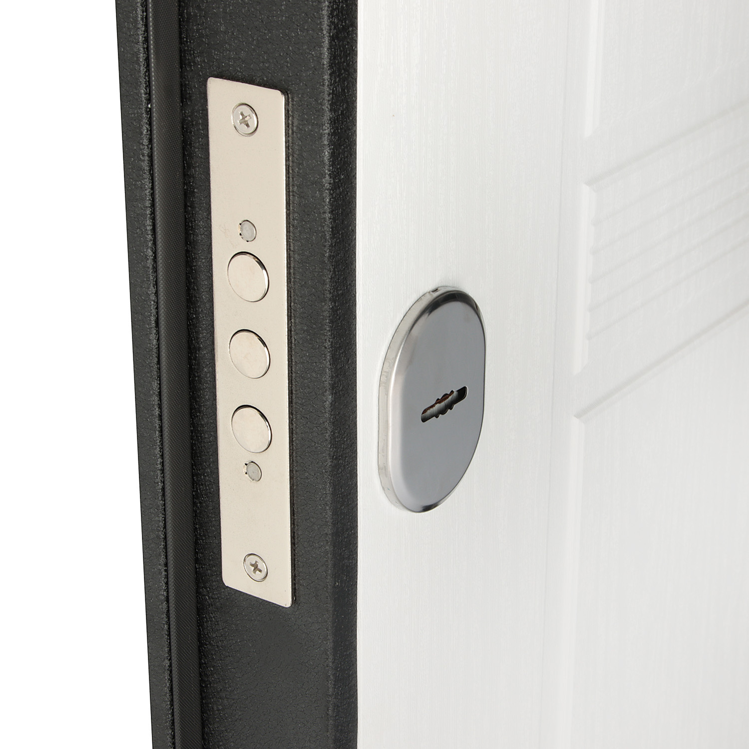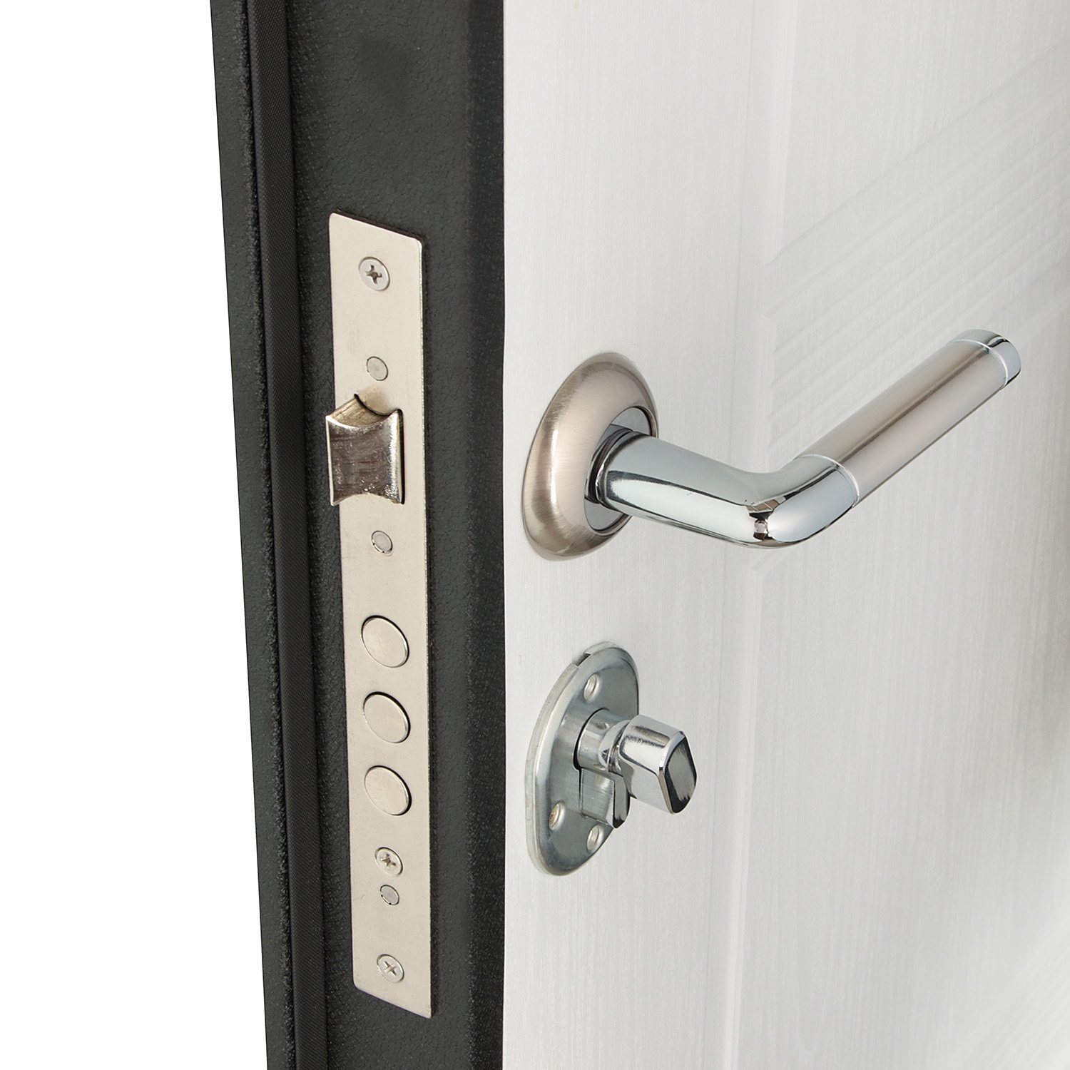 Дверное полотно, дверной короб, петли- 3 шт., противосъемные ригели - 3 шт., наличник, уплотнители -