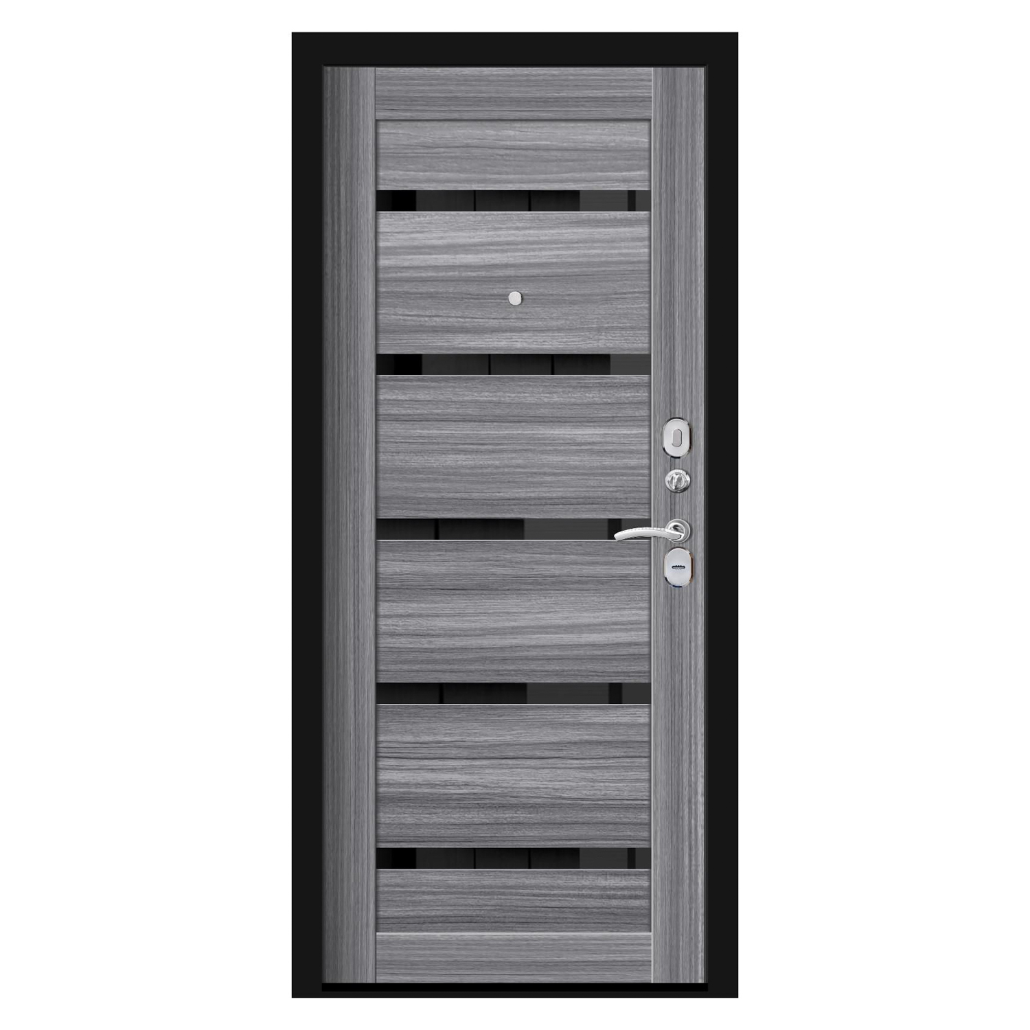 Дверное полотно, основной замок, дополнительный замок, ночная задвижка, глазок, ручка, петли - 2 шт.