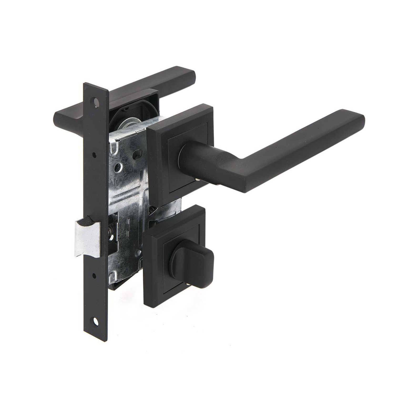 Комплект Фабрика Замков FZ SET 25L 170 BK BP – набор дверной фурнитуры «3 в 1»: ручки на розетке, межкомнатный замок под фиксатор, сантехническая завертка. Содержимое комплекта рассчитано на одну межкомнатную дверь.
