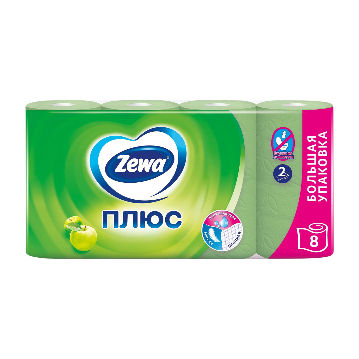 яяяБумага туалетная ЗЕВА Плюс 2сл 8рул  яблоко*12