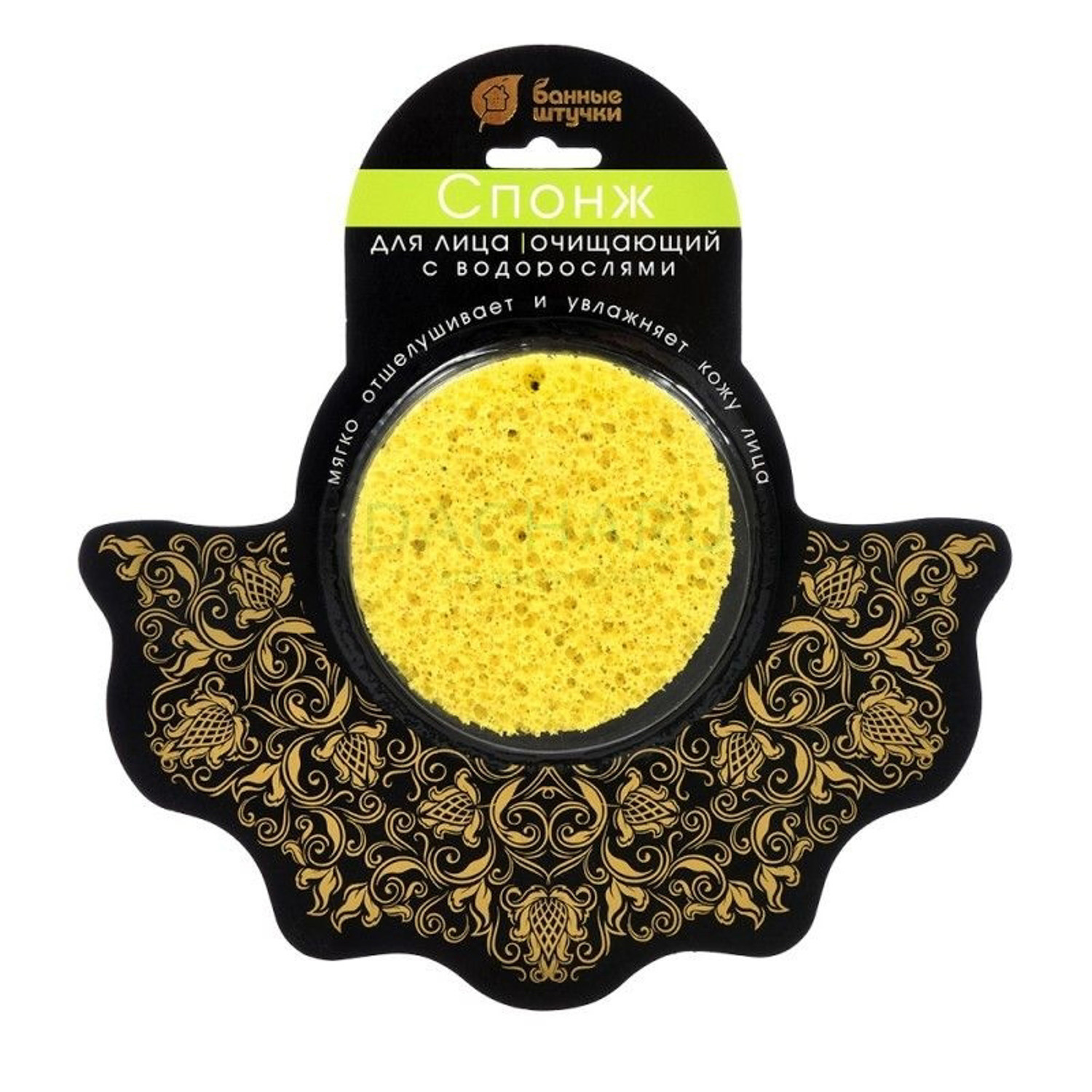 Спонж для лица, с водорослями, очищающий, d=90*15 мм "Банные штучки" /30