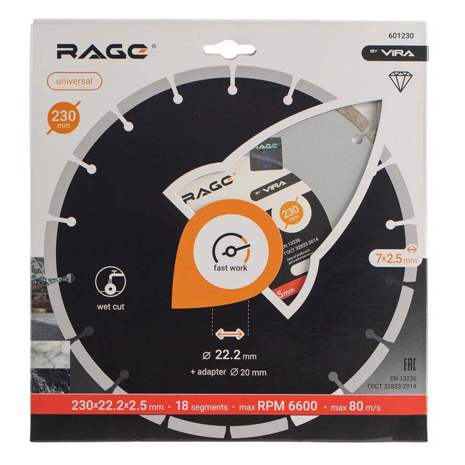 Диск алмазный сегментный HQ 230 мм RAGE by VIRA