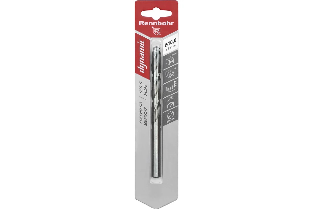 Сверло по металлу10,00*133/87мм HSS-G P6M5 (1шт) блистер арт.675100 DYNAMIC RENNBOHR *6/48/192