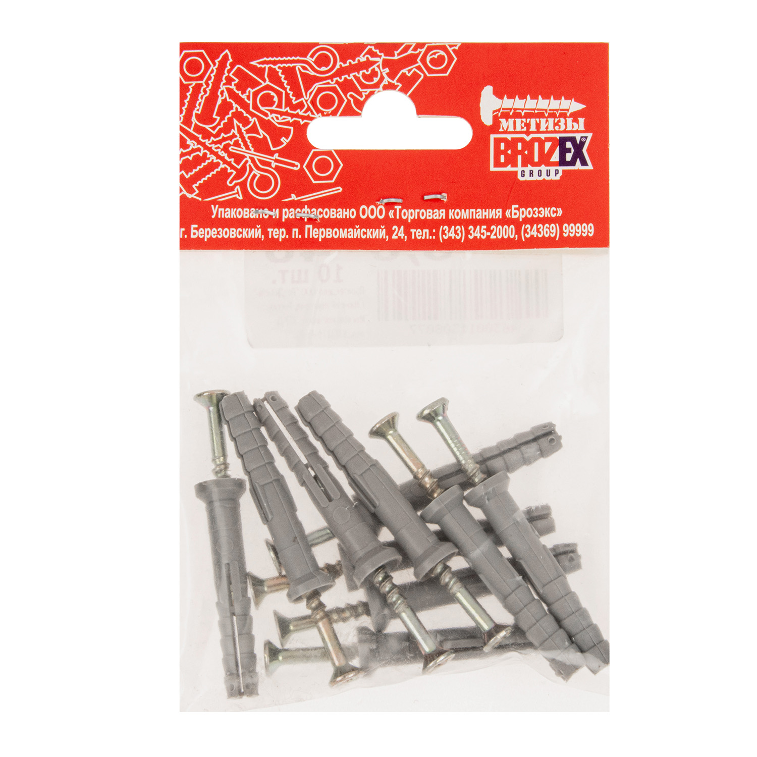 Дюбель с шурупом 6х40 мм BROZEX, оцинкованная сталь, 10 шт.