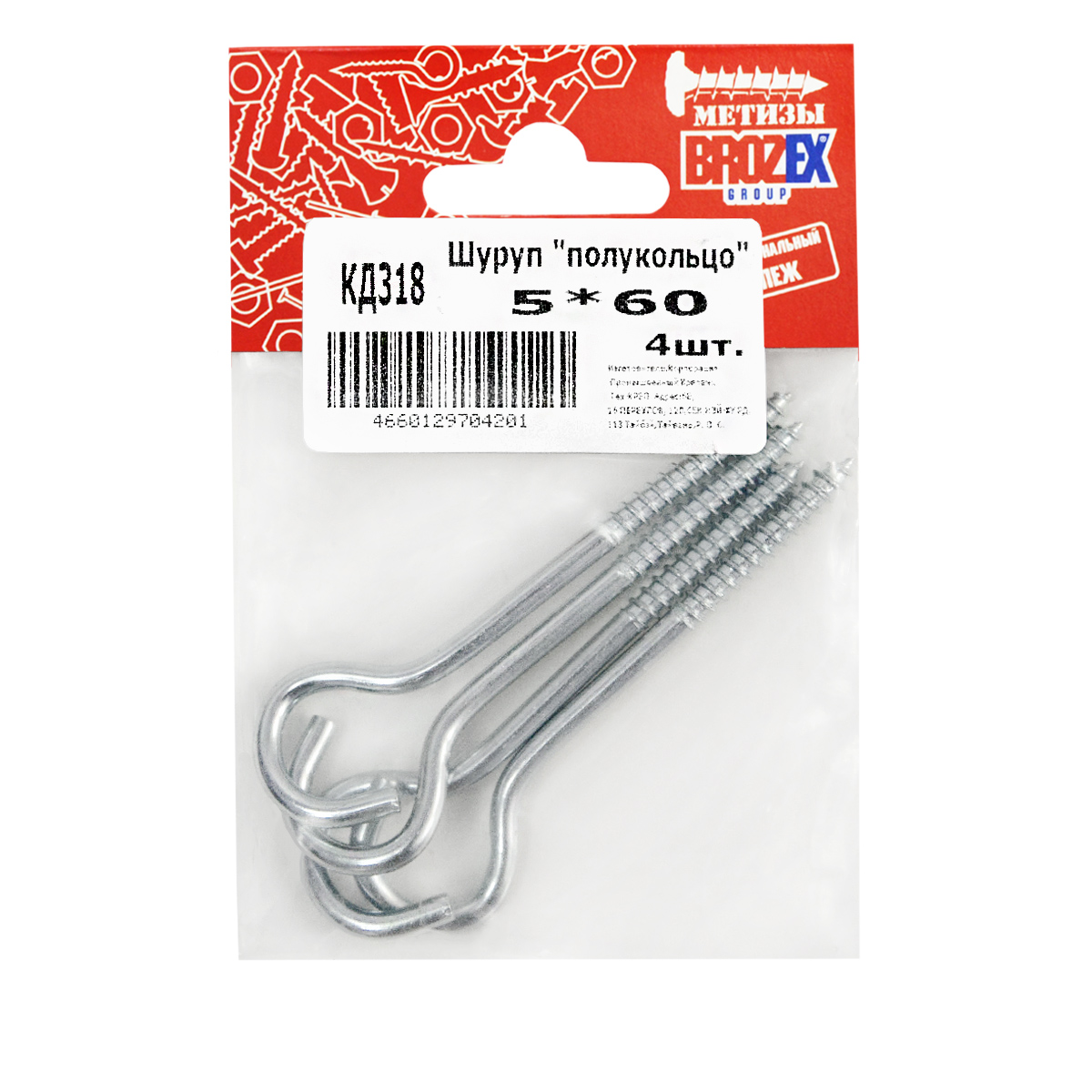 Шуруп "полукольцо" BROZEX 5*60 оцинков. (4шт) *10/100