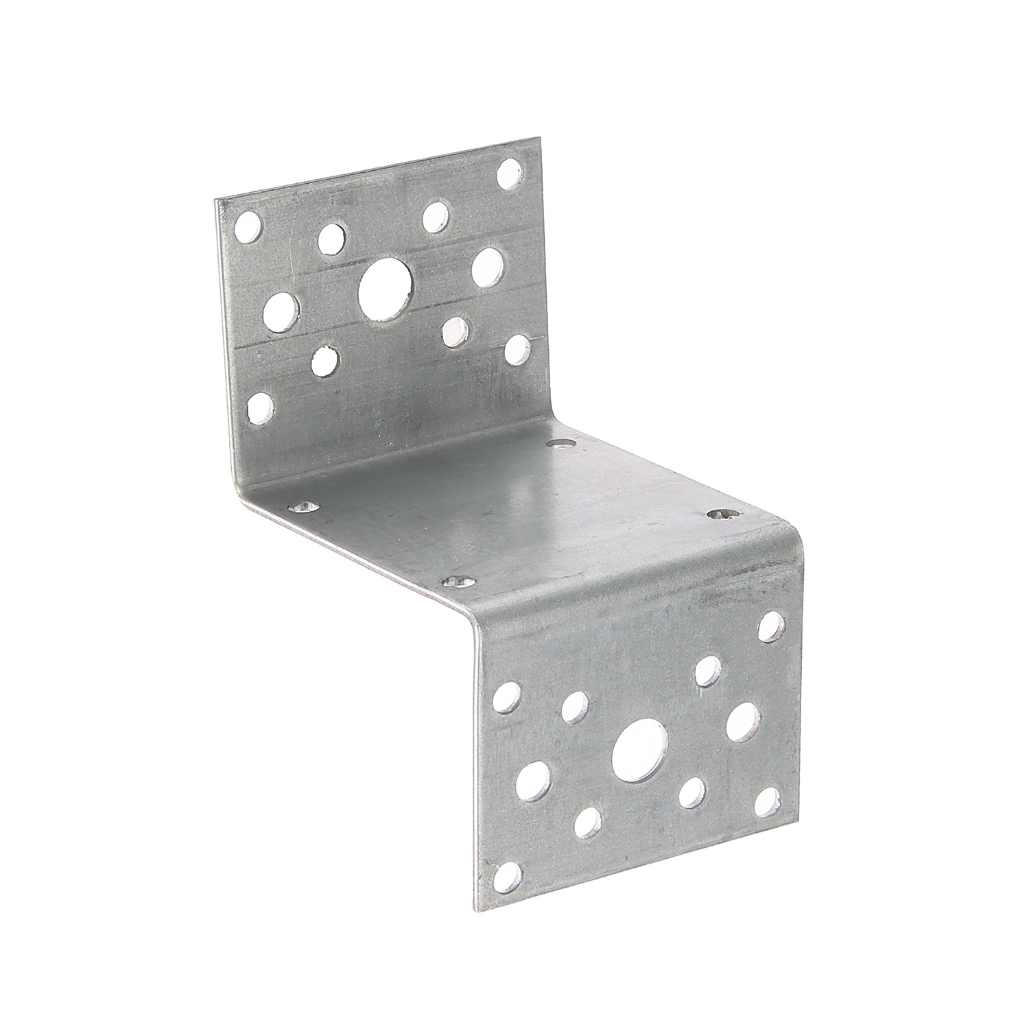 Уголок крепежный Z-образный KUZ-90 ТехноСервис — гнутая металлическая пластина с перфорацией, состоящая из основы и двух разнонаправленных полок. Выполняет роль кронштейна при креплении деревянного элемента конструкции на поверхность основы.