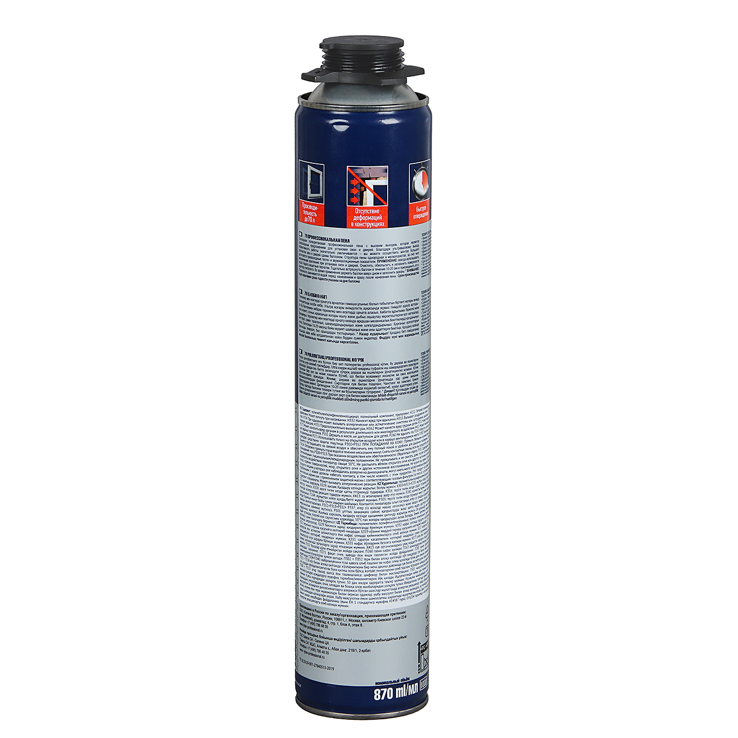 Стабильно большой выход пены из баллона — до 70 литров.