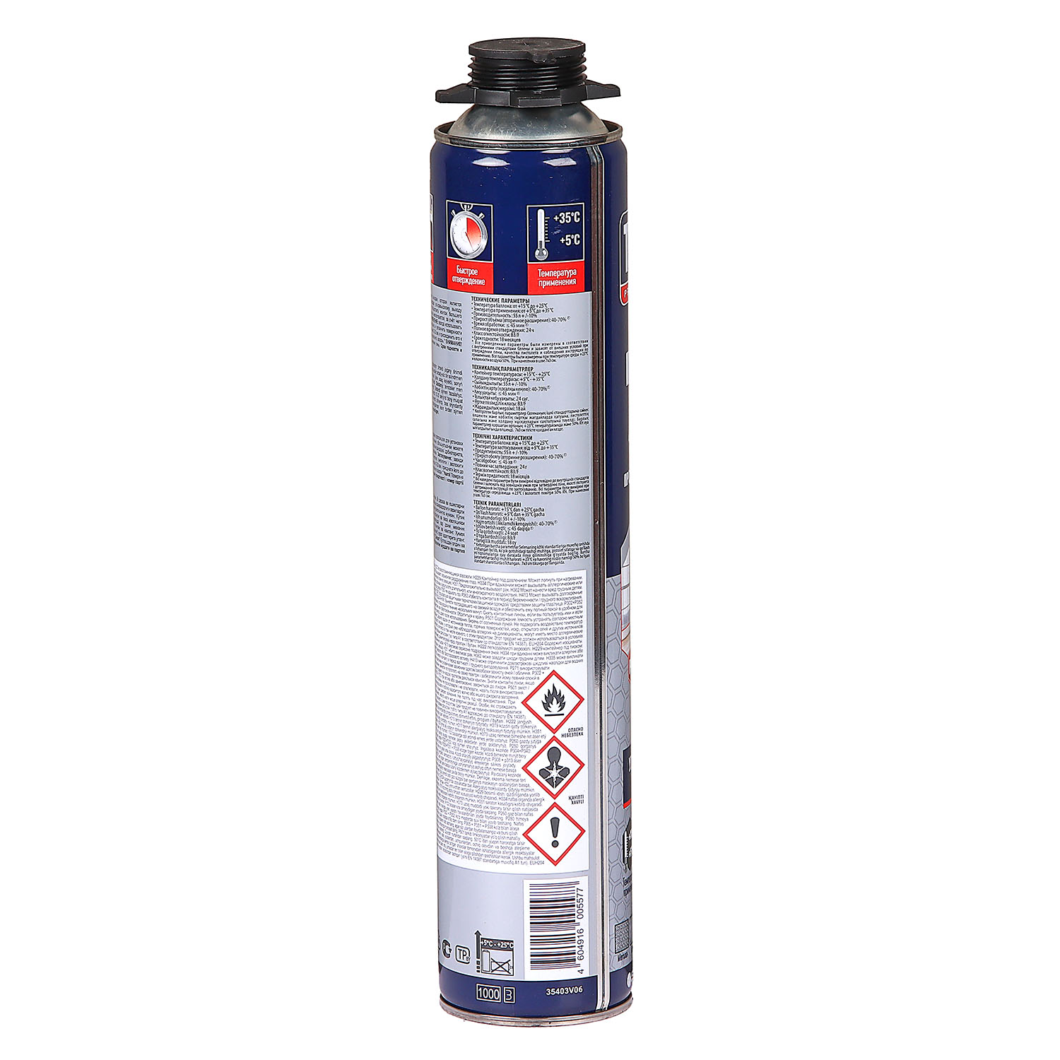 Отсутствие выделения изоцианата из застывшей пены (нулевая эмиссия NCO) за счет применения технологии связывания изоцианатаных групп в преполимере внутри баллона.