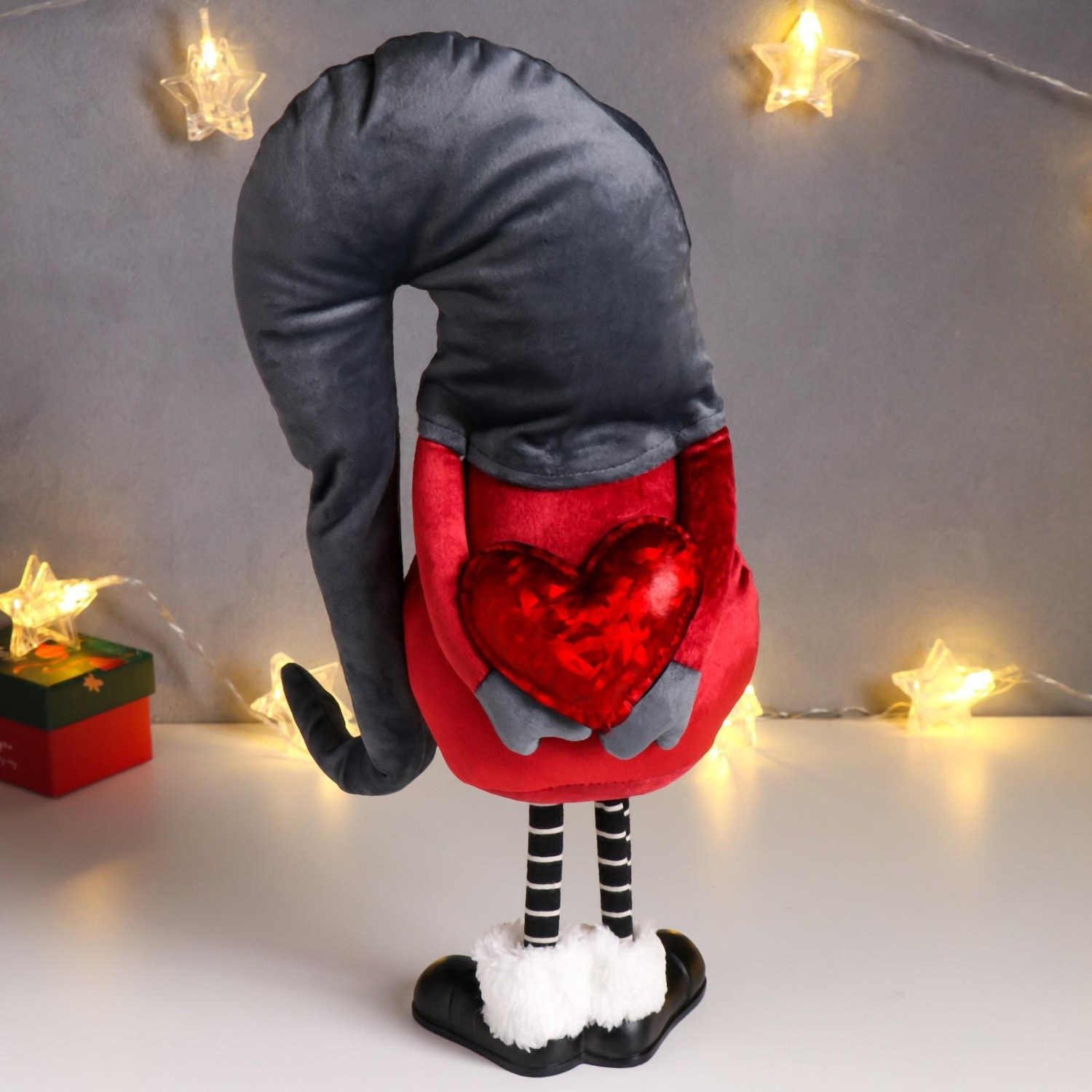 Кукла интерьерная "Дед Мороз в бордовом кафтане, в сером колпаке со снежинками" 42х13х18 см 626