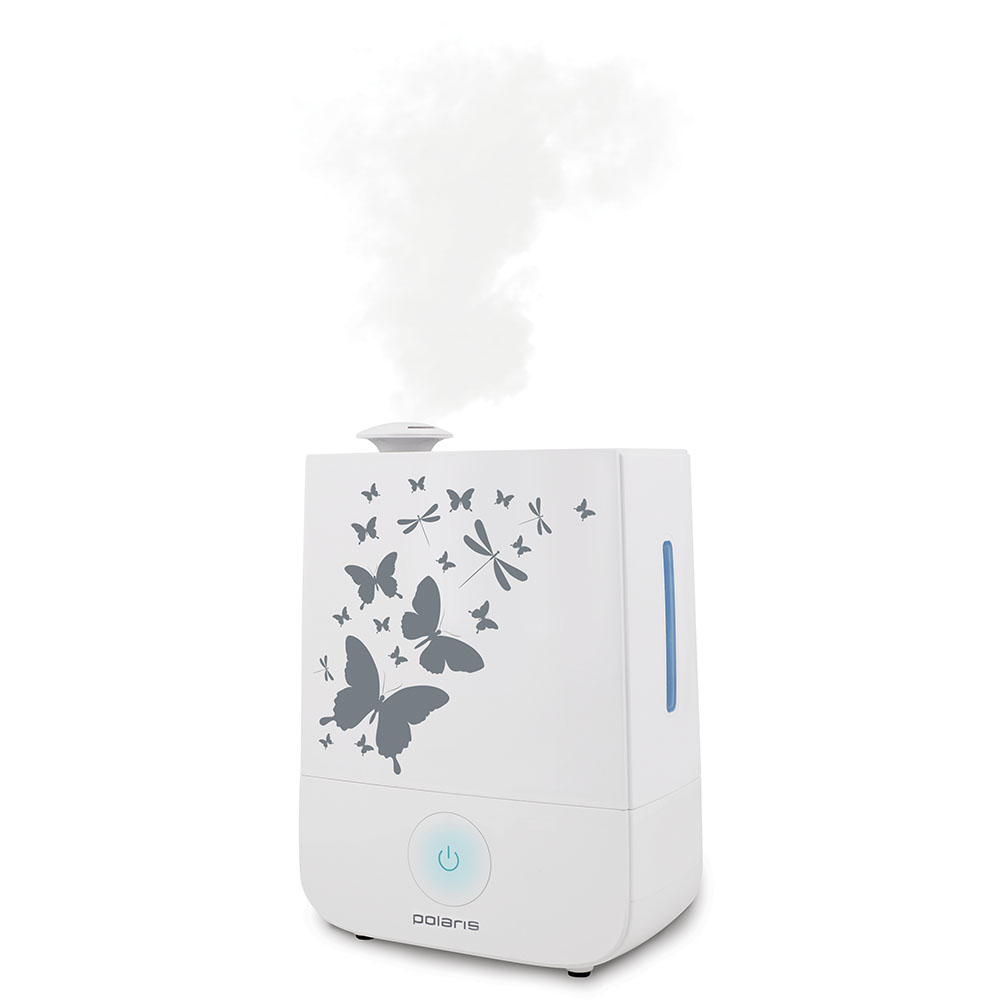 Увлажнитель воздуха Polaris PUH 3504 имеет современный дизайн, подходящий практически под любой интерьер. У него лаконичная форма и неброский рисунок на корпусе. Прорезиненные ножки позволяют ему устойчиво зафиксироваться в месте установки.