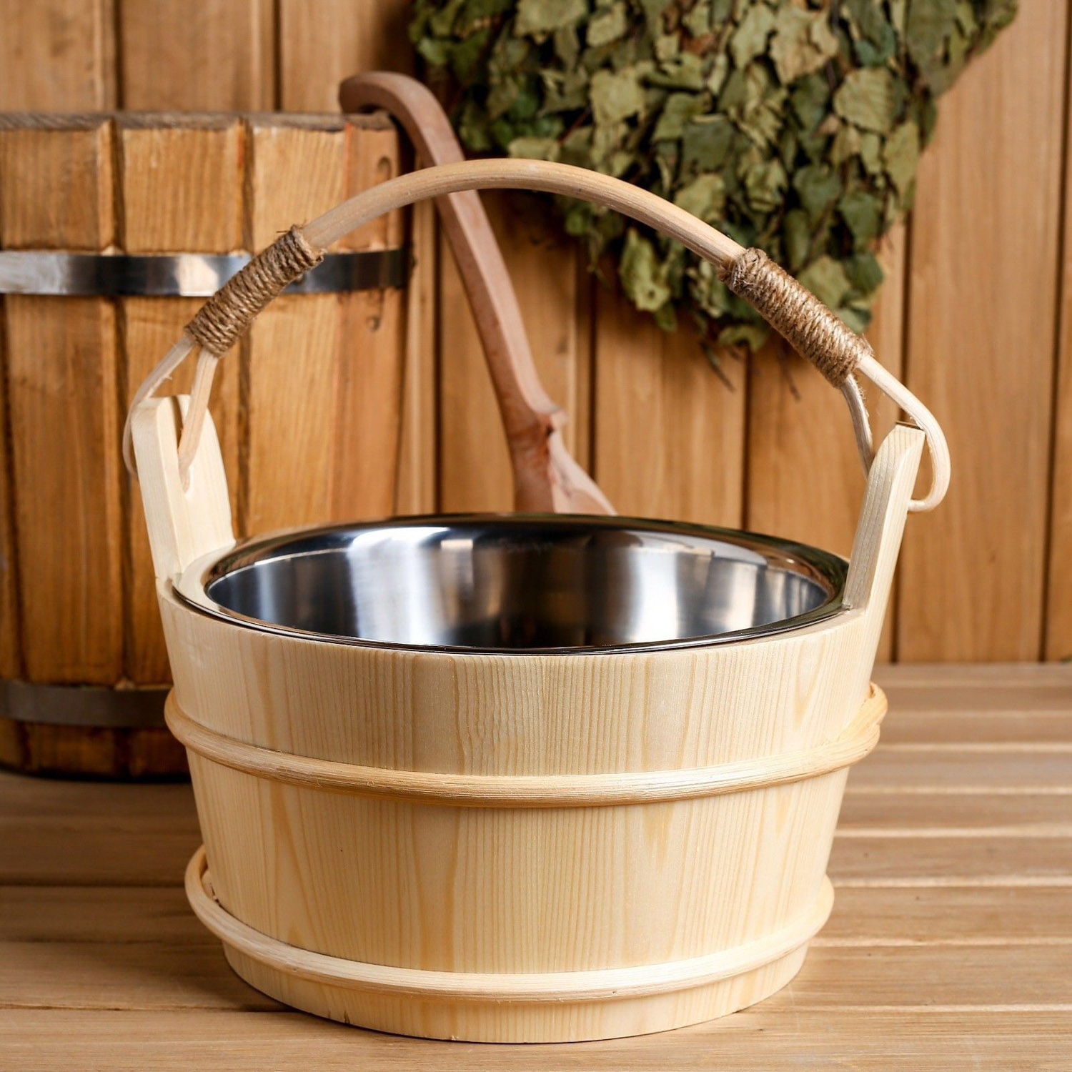 Ведро для бани с нержавеющей вставкой, 3,7 литра 27х22х21 см 4538736