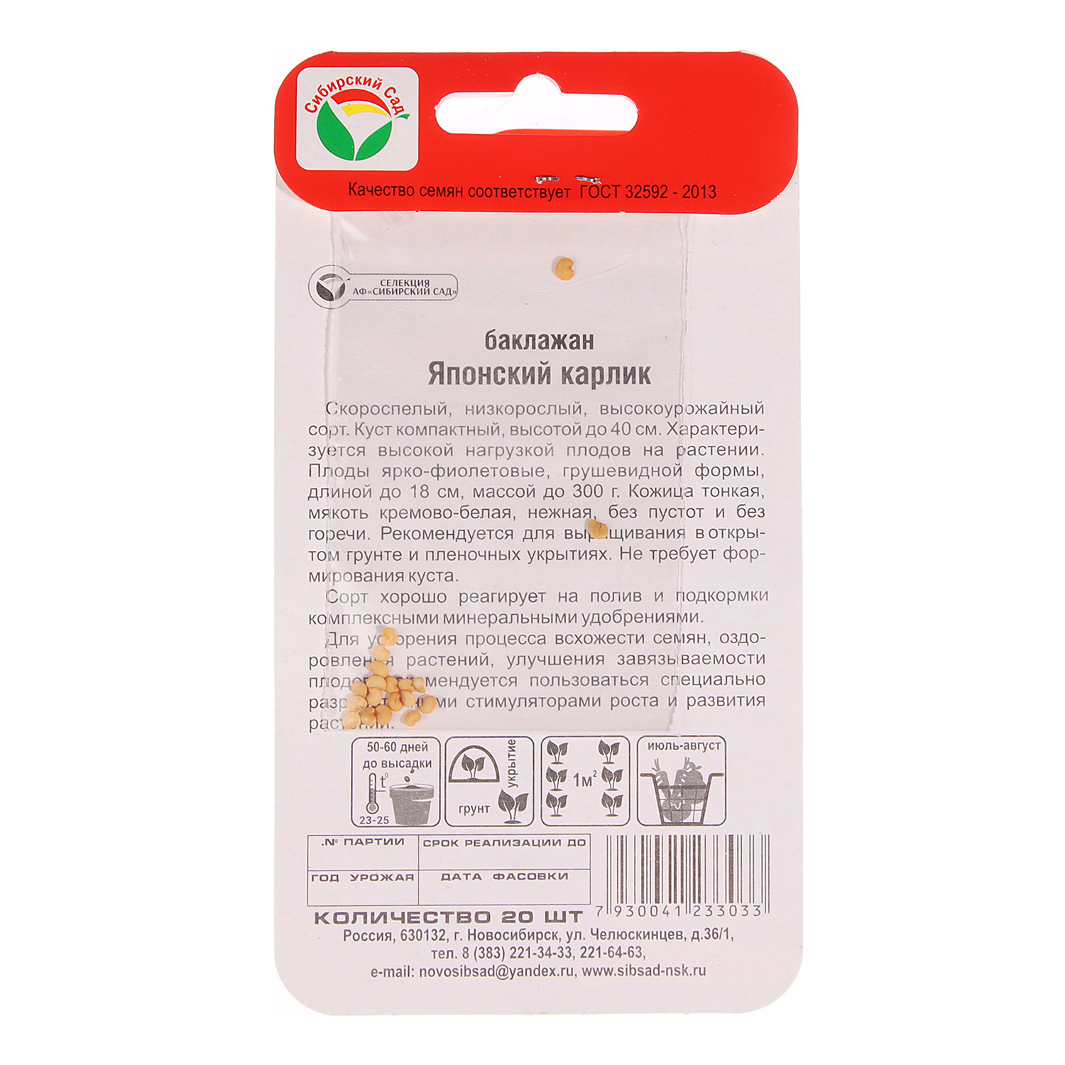 Семена Баклажан Японский карлик 20шт Сибирский сад *10/500