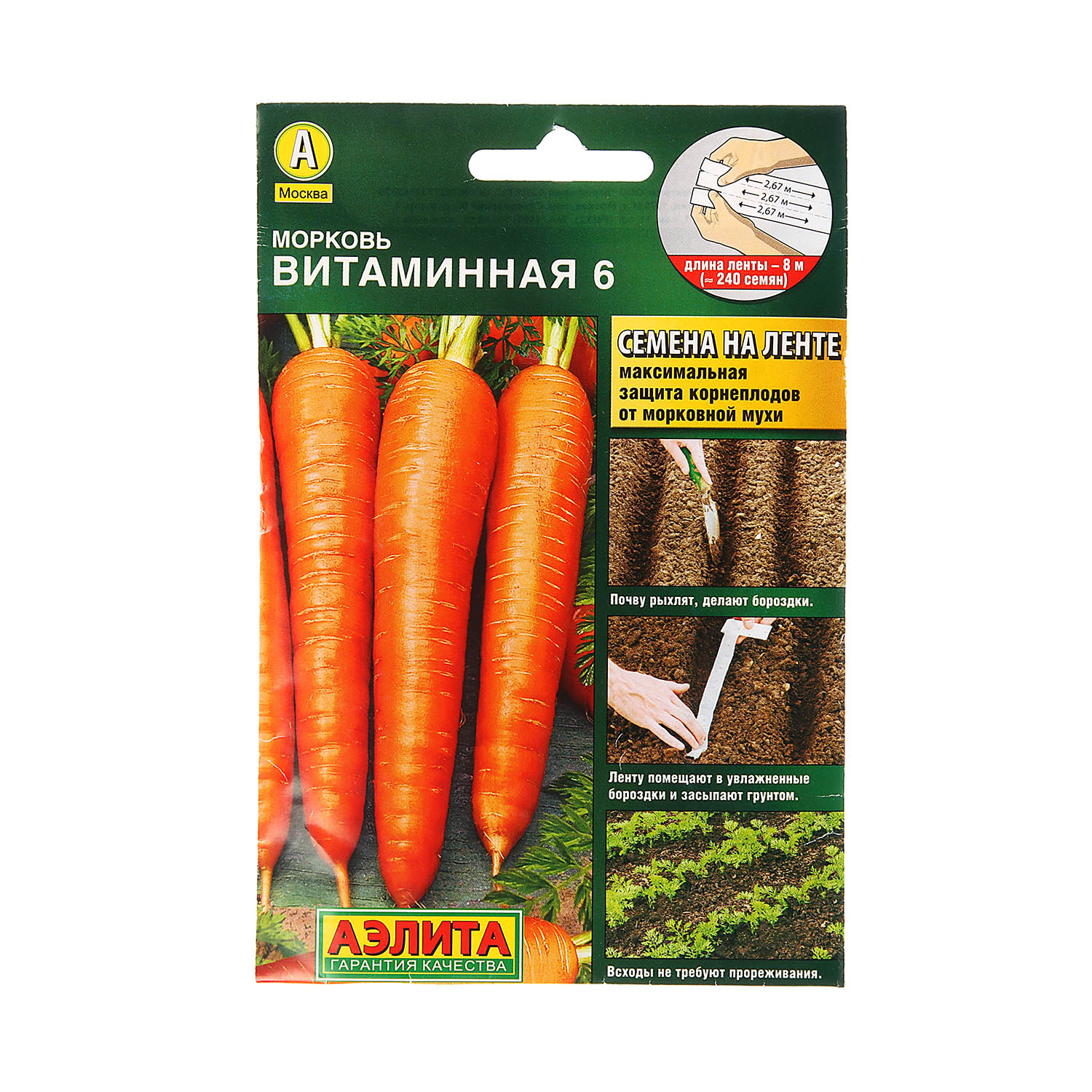 Семена Морковь Витаминная 6 8м ЛЕНТА Аэлита *10/500
