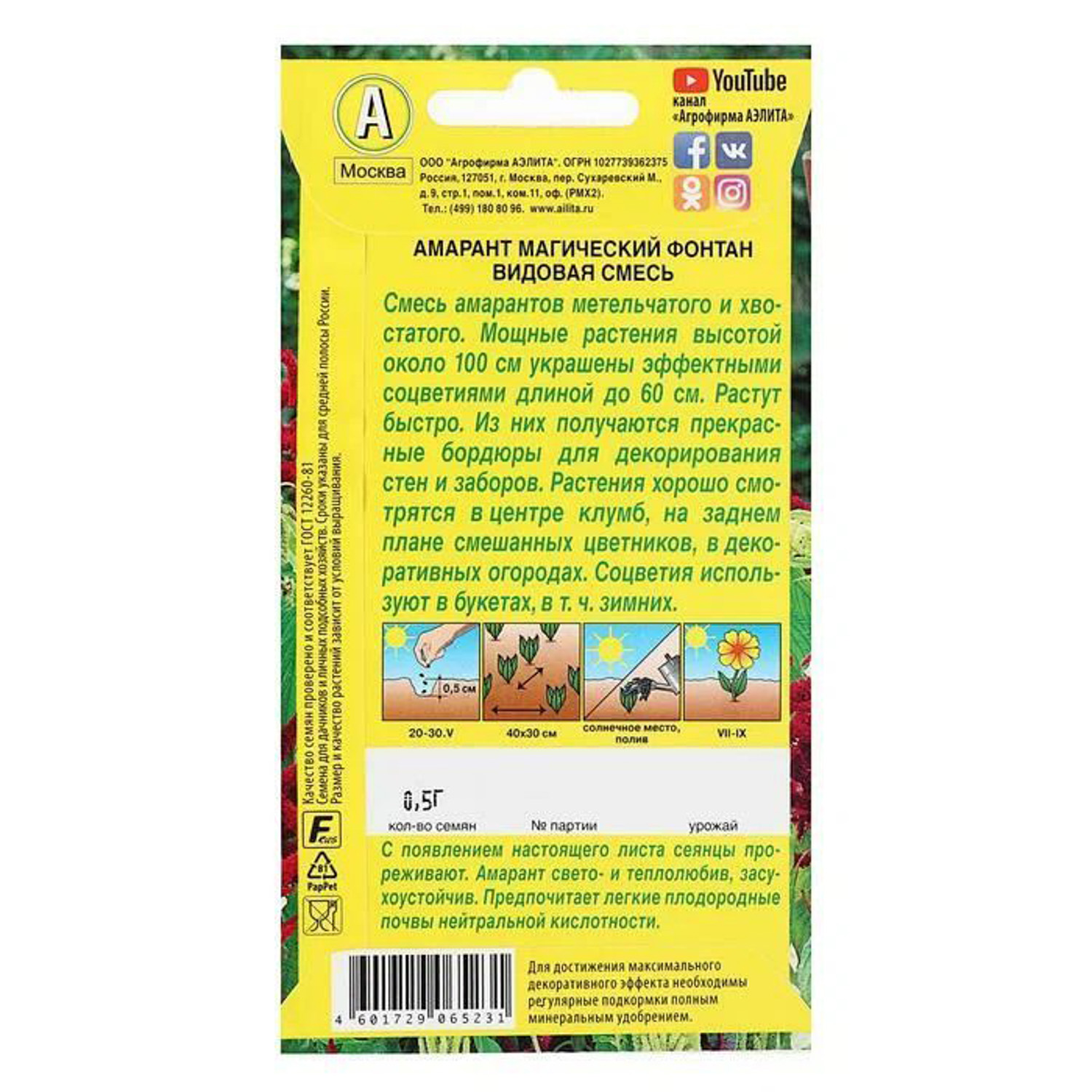 Семена Амарант Магический фонтан  0,5гр Аэлита цв *10/200