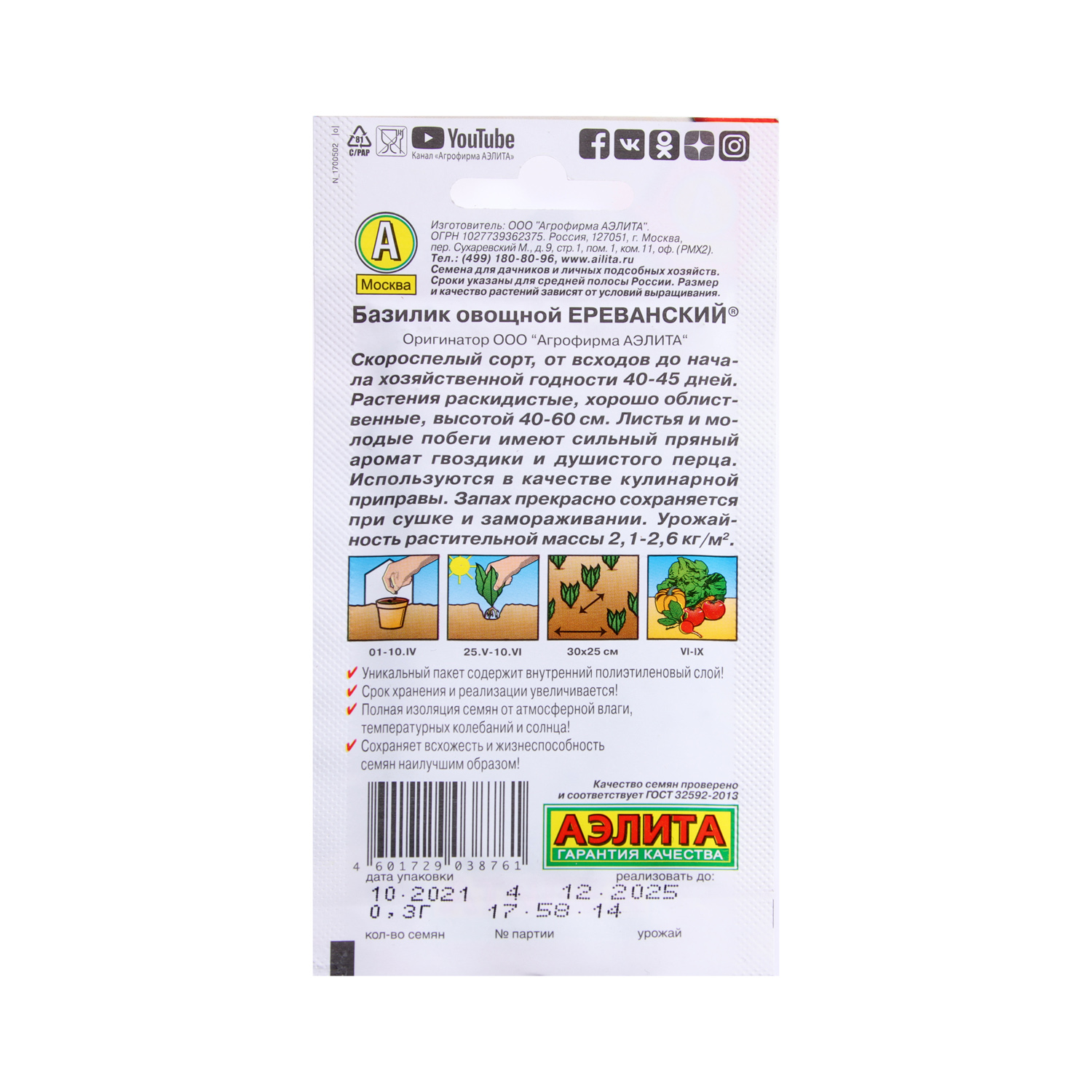 Семена Базилик Ереванский 0,3гр Аэлита цв автор *10/500