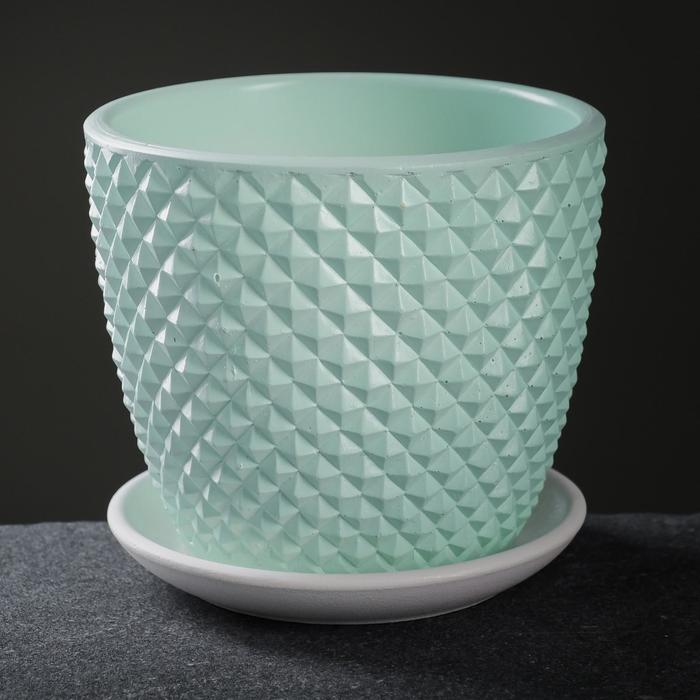 Кашпо бетон Бутон Грань 1,31л d верха 146мм h130мм с поддоном Зеленый №2 КБ-Б2-217-01 *9