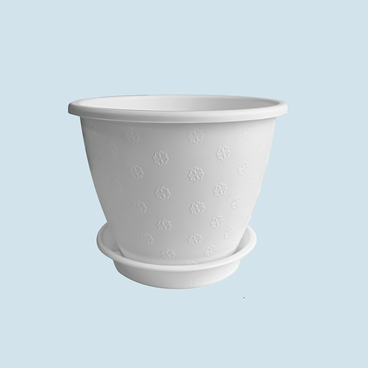 Кашпо пластм. "Цветочек" 1,2л d верха 150мм h120мм с поддоном Белое КЦ 1,2Б (Екатеринбург) *1/100
