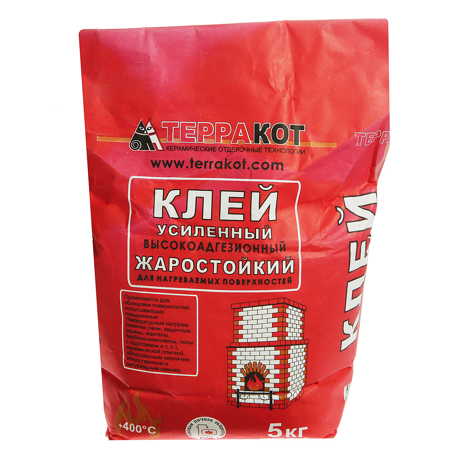 Жаростойкий клей Терракот обладает высокой силой сцепления с поверхностью, пластичностью. При соблюдении рекомендуемой толщины слоя не стекает с поверхностей. Стойкий к воздействию влаги и повышенных температур (до +400 °С).