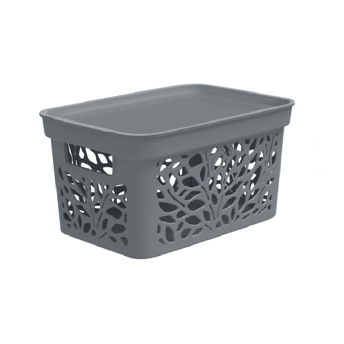 Корзина для хранения пластм. "Leaves" 333х225х174мм с Крышкой 10л Серый арт.83701("Полимербыт")*1/12