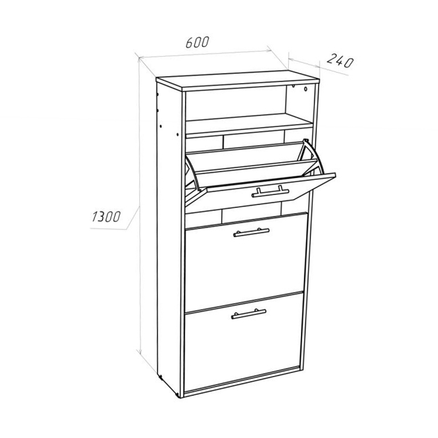 Обувница 600*240*1300, 3 секции Дуб грей *1