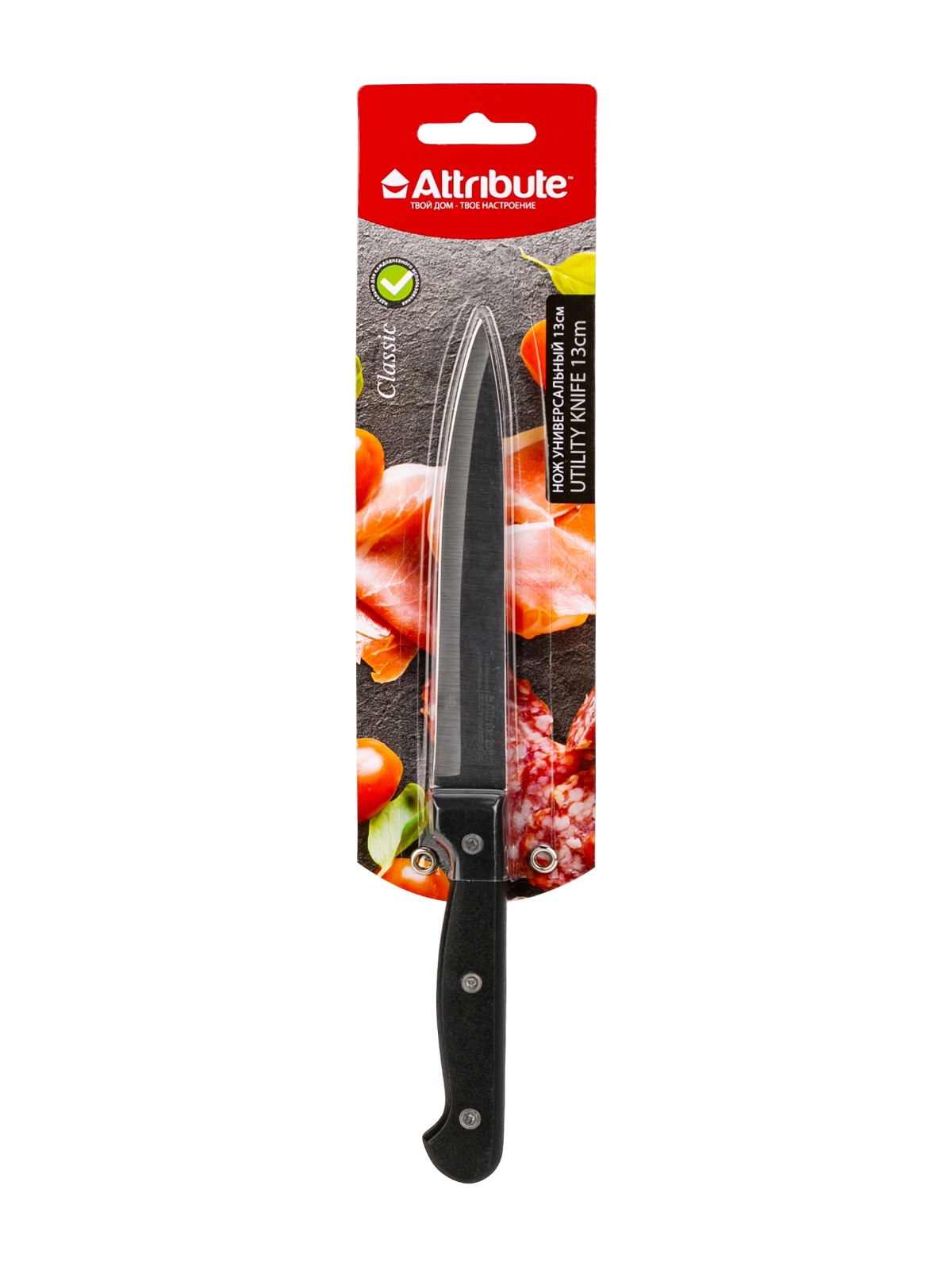 Нож кухонный ATTRIBUTE пл.р. Classic универсальный дл.лезв.13см AKC115 блистер *1/6/72