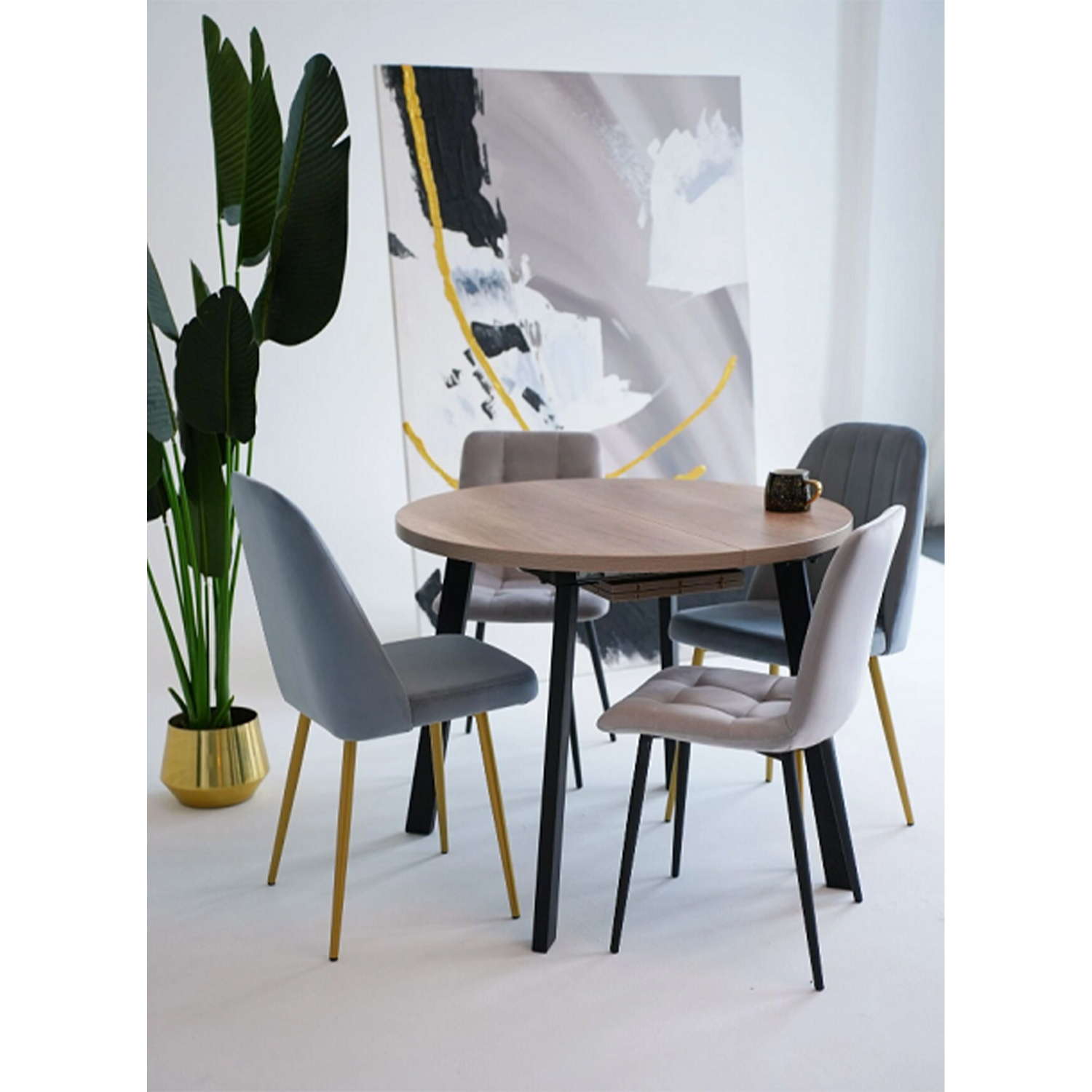Стол обеденный круглый раздв.ГЕЙТ d950(+300)мм h750мм ДУБ КАНЬОН+4 опоры мат.черный *1