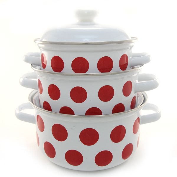 Набор кастрюль эмалированных: 1,5л+2,0л+3,0л рис. "Горох красный" С-124АП2/4"Лысьвенские ЭМАЛИ"*1