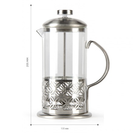 Чайник заварочный жаропрочное стекло "Френч-пресс" 600мл "Light" Серебро (BF-710) "Barouge" *1/40