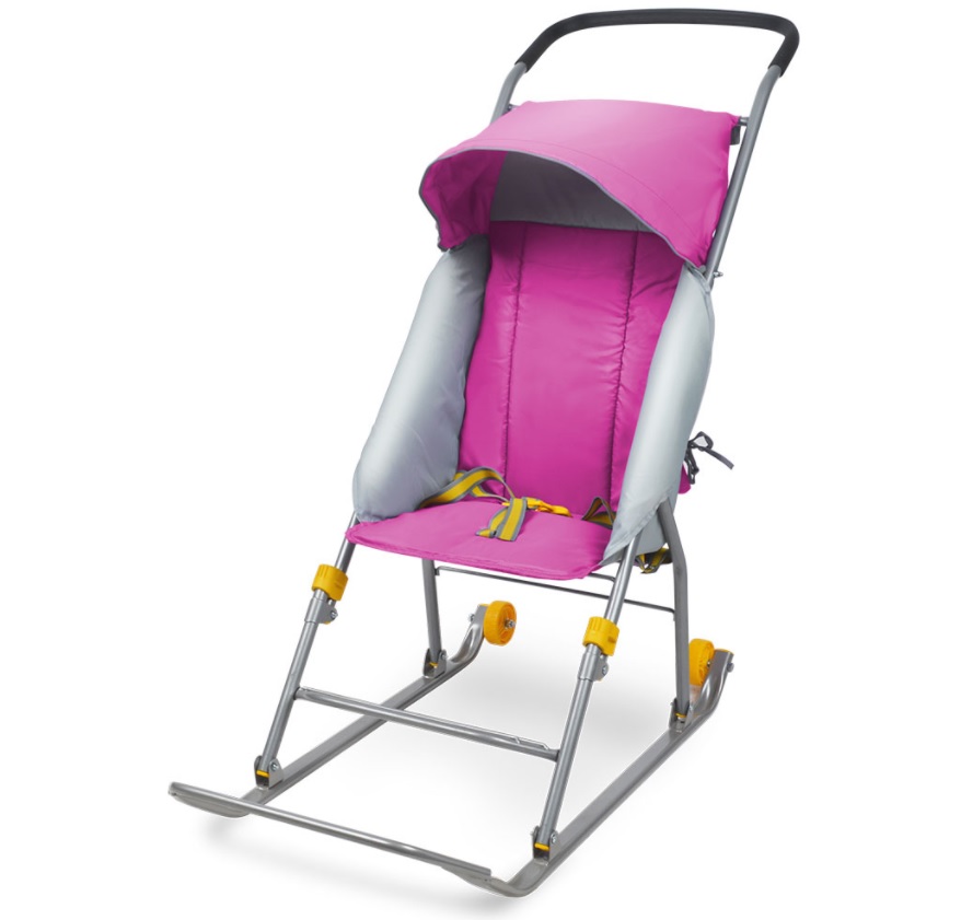 Санки-коляска детские "Умка 1 комфорт" выс.сид.+коз.,плоск.полозья с колес. Розов. У1К (Ижевск)*1/2