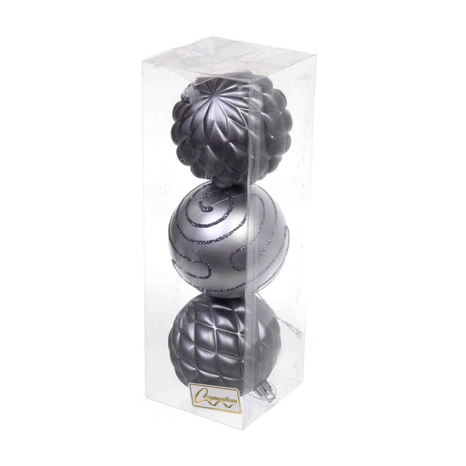 Новогодние шары 7см (набор 3шт) "Сказочная мечта", серебро/графит