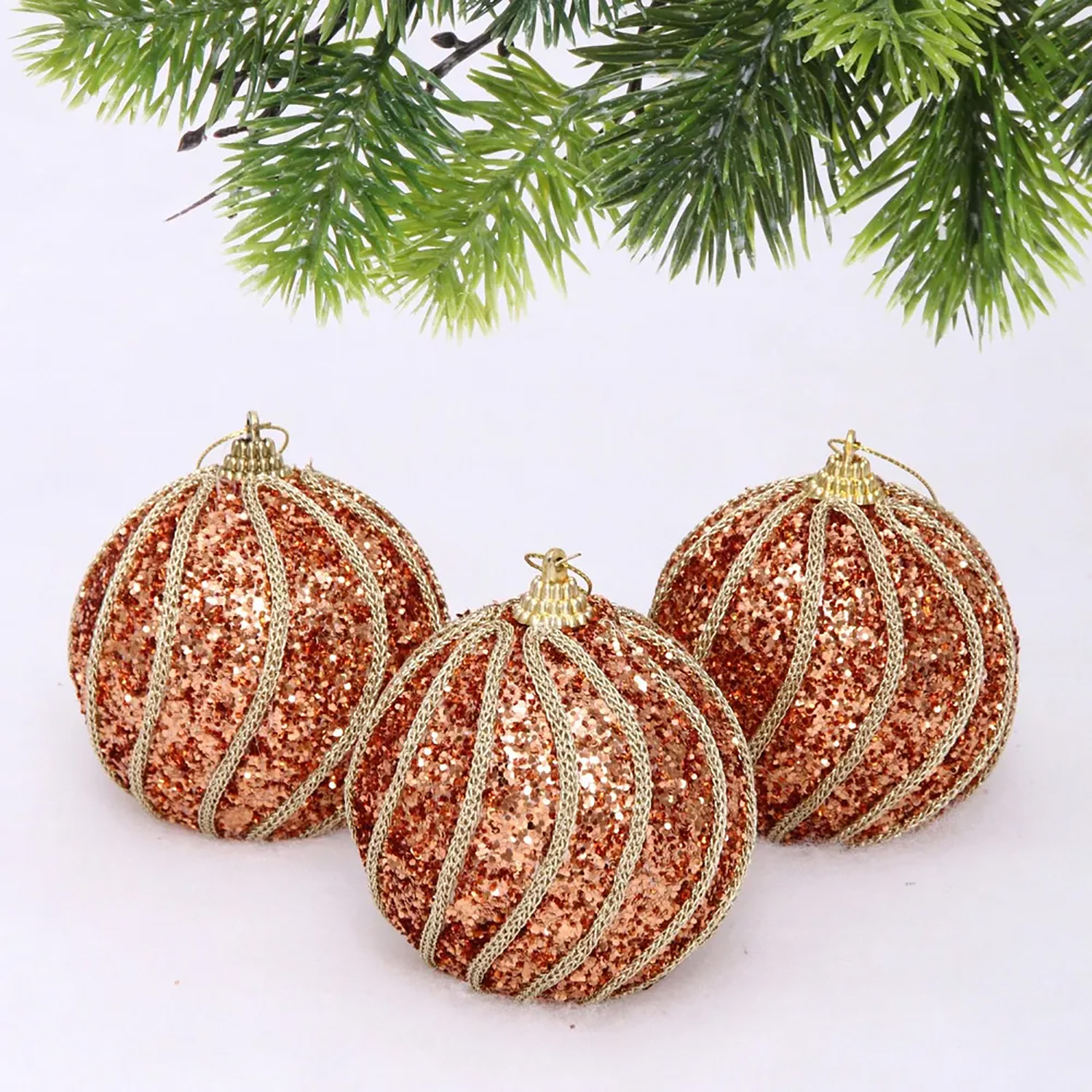 Новогодние шары "GLAME - Блестящий мир" 8 см (набор 3 шт), Розовое золото