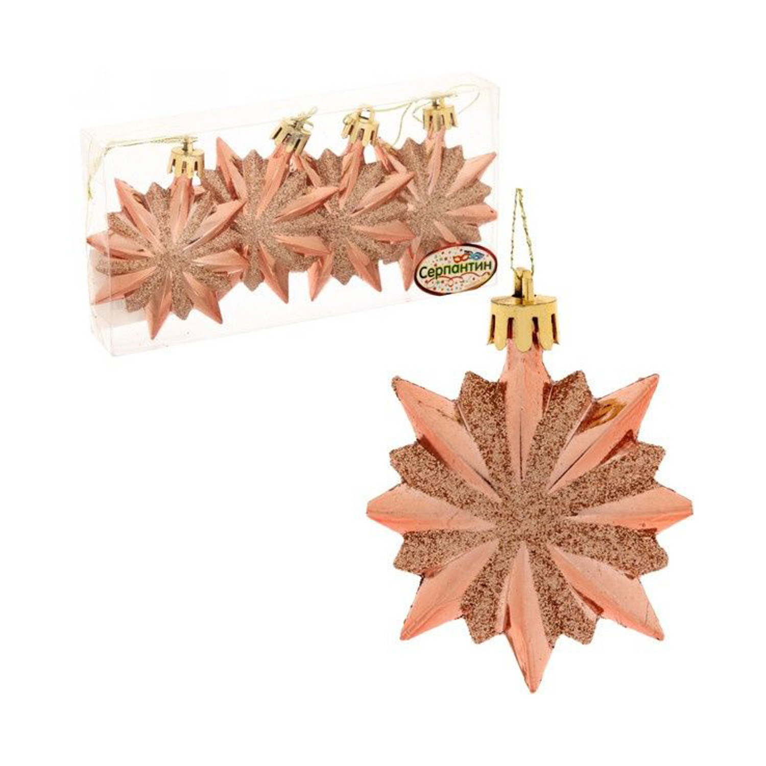 Ёлочные игрушки "Звезда остроконечная" 6 см (набор 4 шт), янтарь