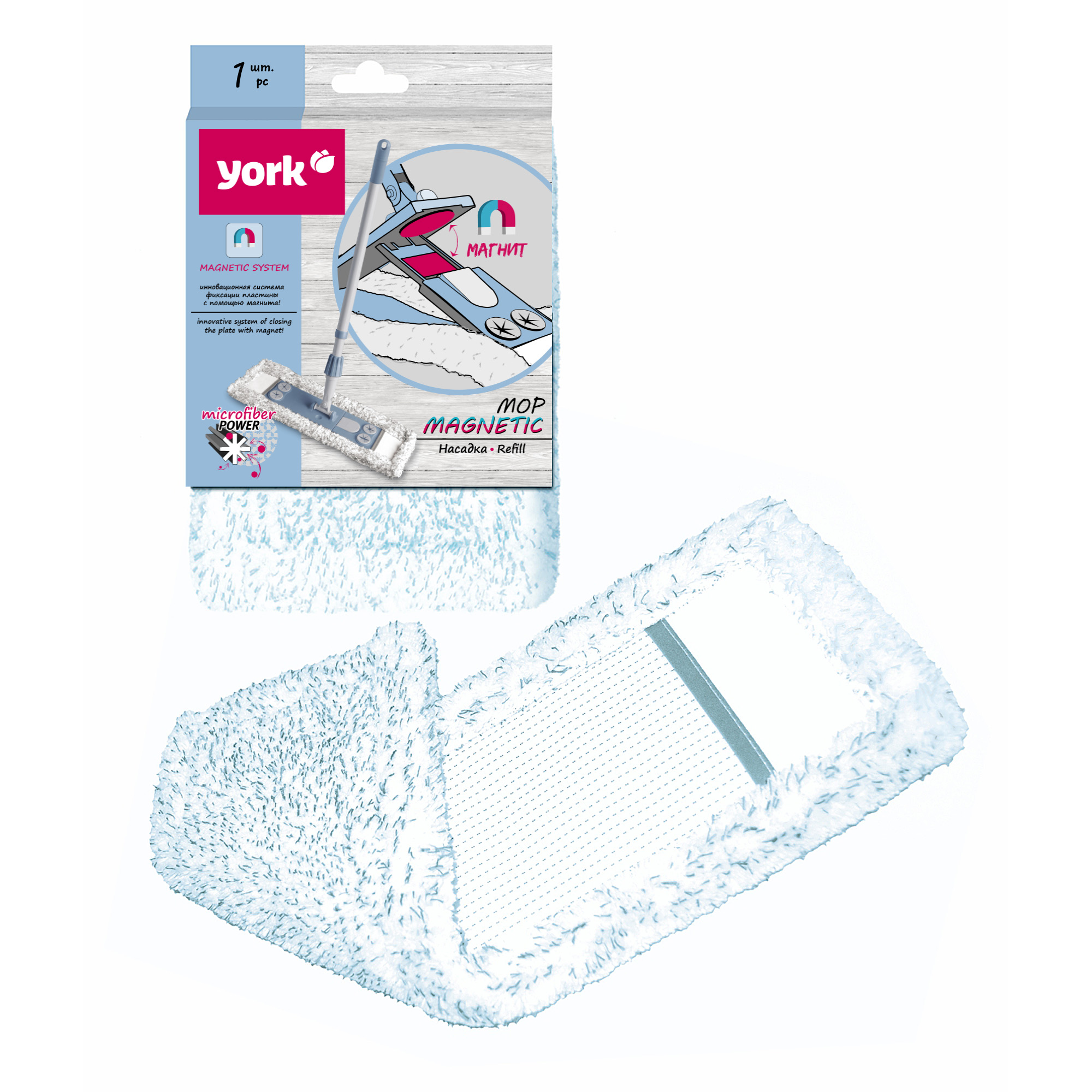 Насадка сменная д/мытья пола д/швабры"Флеттер" микрофибра "MAGNETIC" 081700 "York" *1/24