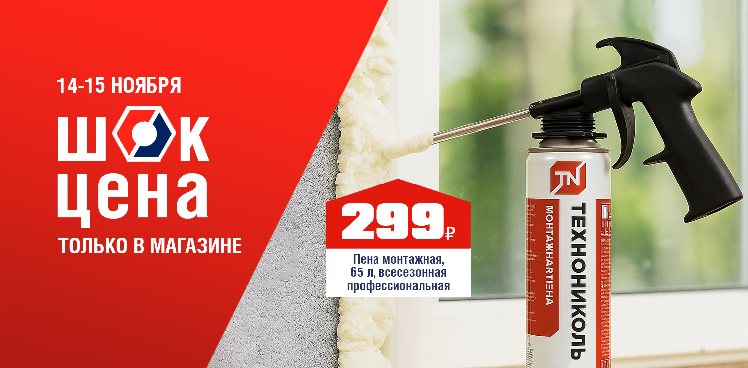 Устали от щелей и сквозняков? Тогда монтажная пена на 65 литров — то, что вам нужно! Она надежно загерметизирует любые швы и станет вашим незаменимым помощником в строительстве и ремонте. 14 и 15 ноября в розничных магазинах ДомоСтрой не пропустите ШОК-цену: