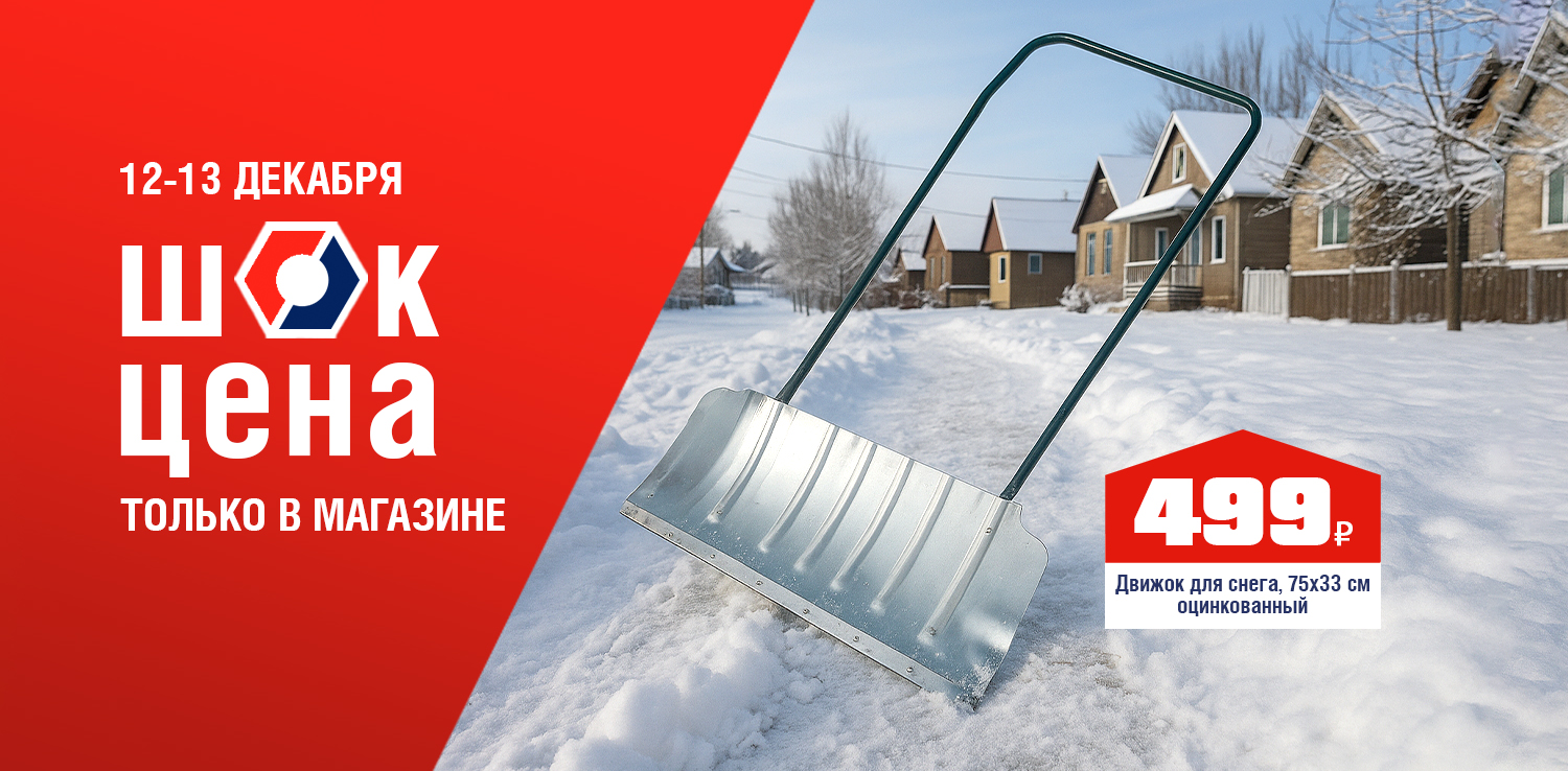 • арт. АХ711 Движок для снега / 750х330 мм / оцинкованный - 499 ₽ (не более 1 шт. в руки)Количество товара по акционной цене ограничено. Акция действует 12.12.2025 и 13.12.2025 г. в розничных магазинах ДомоСтрой. Акция не суммируется с бонусами, промокодами и другими акциями (в том числе со скидкой по дисконтной карте, скидкой для пенсионеров и акцией для новоселов). Акция действует только для физических лиц, на юридические лица скидка не распространяется.